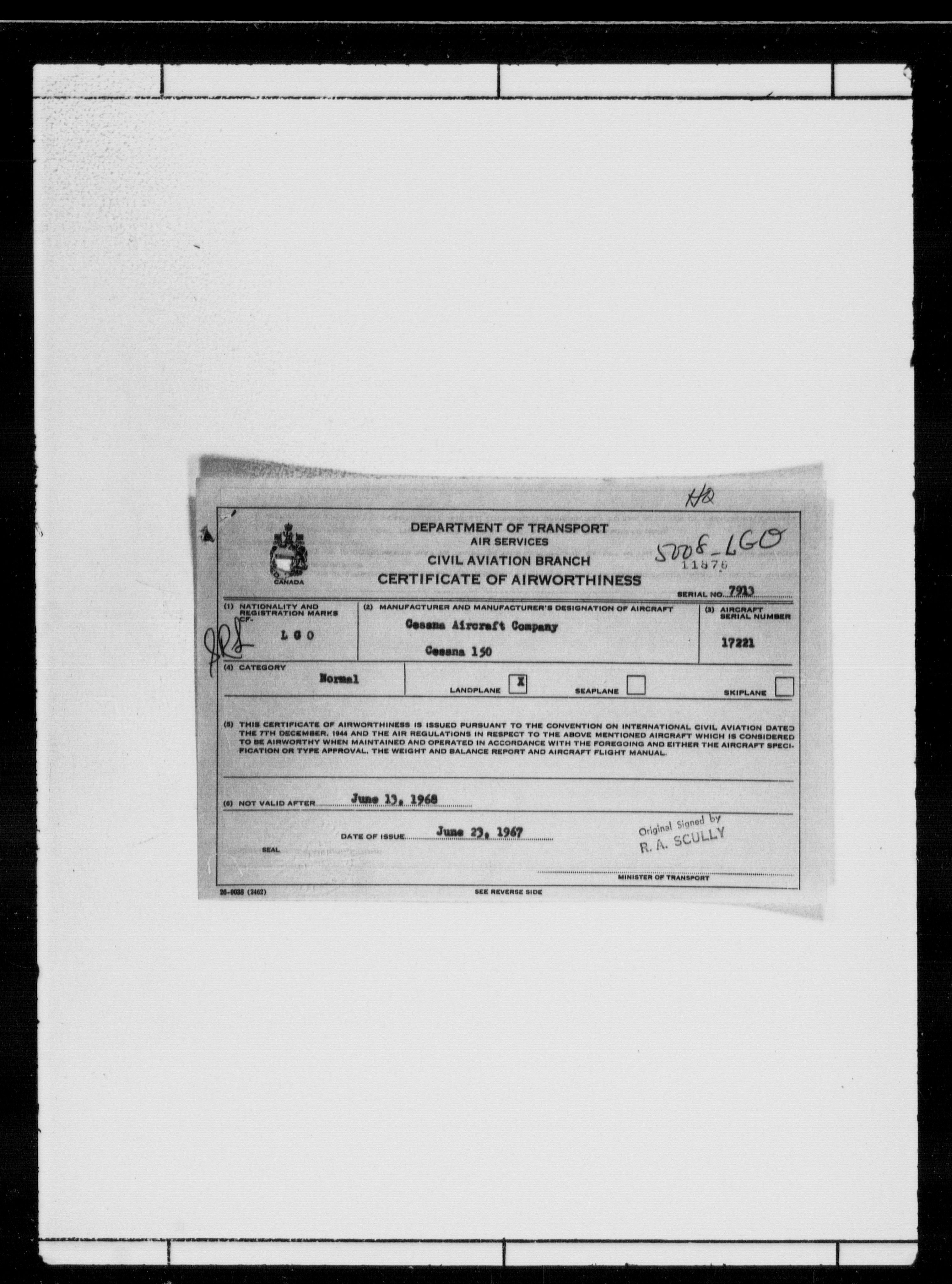 Department of Transport : Civil aircraft registration, inspection and operation files, block 5008, 1920-1986 - 7799