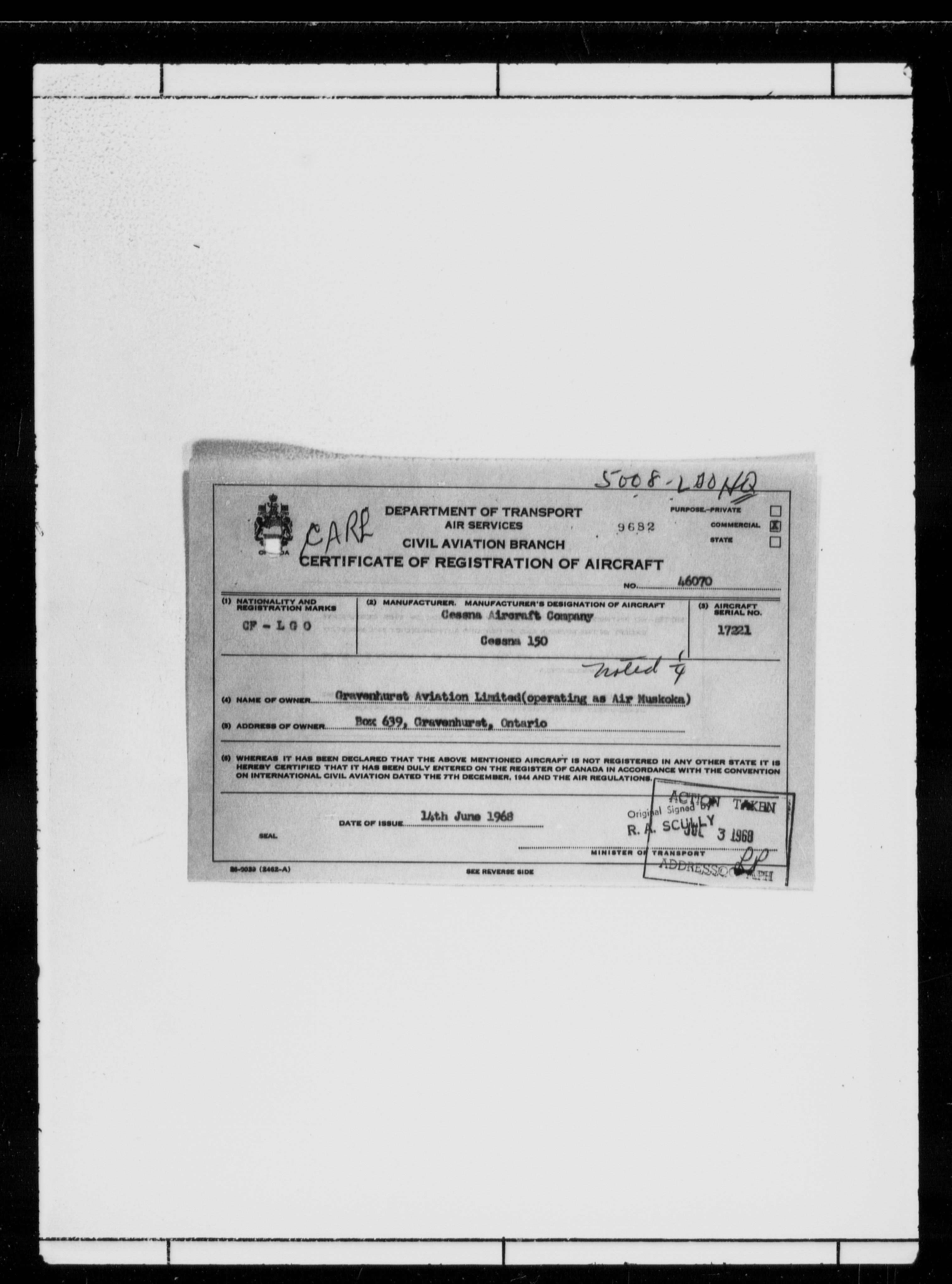 Department of Transport : Civil aircraft registration, inspection and operation files, block 5008, 1920-1986 - 7799