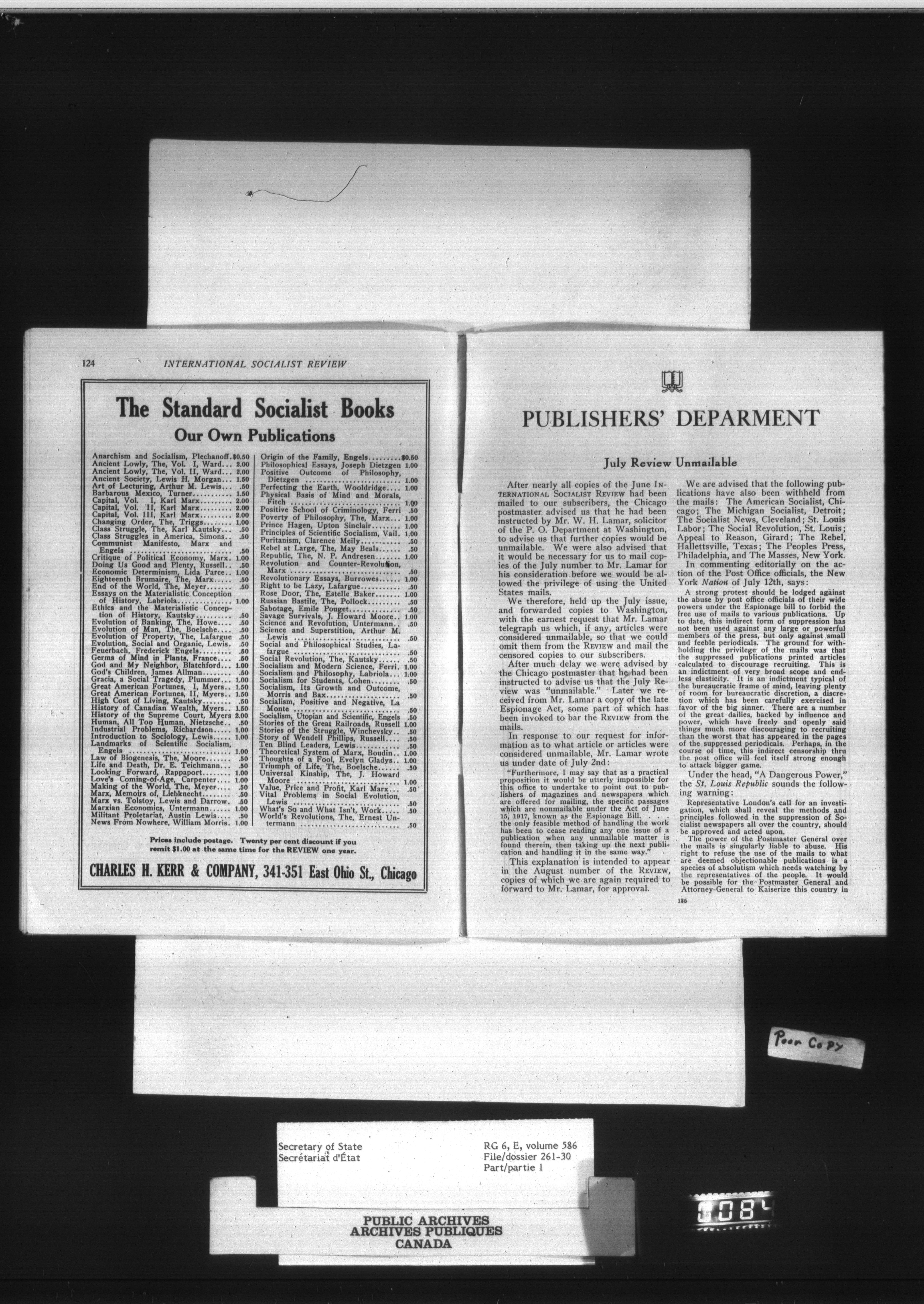 Secretary of State : Chief Press Censor, 1915-1920 - 78
