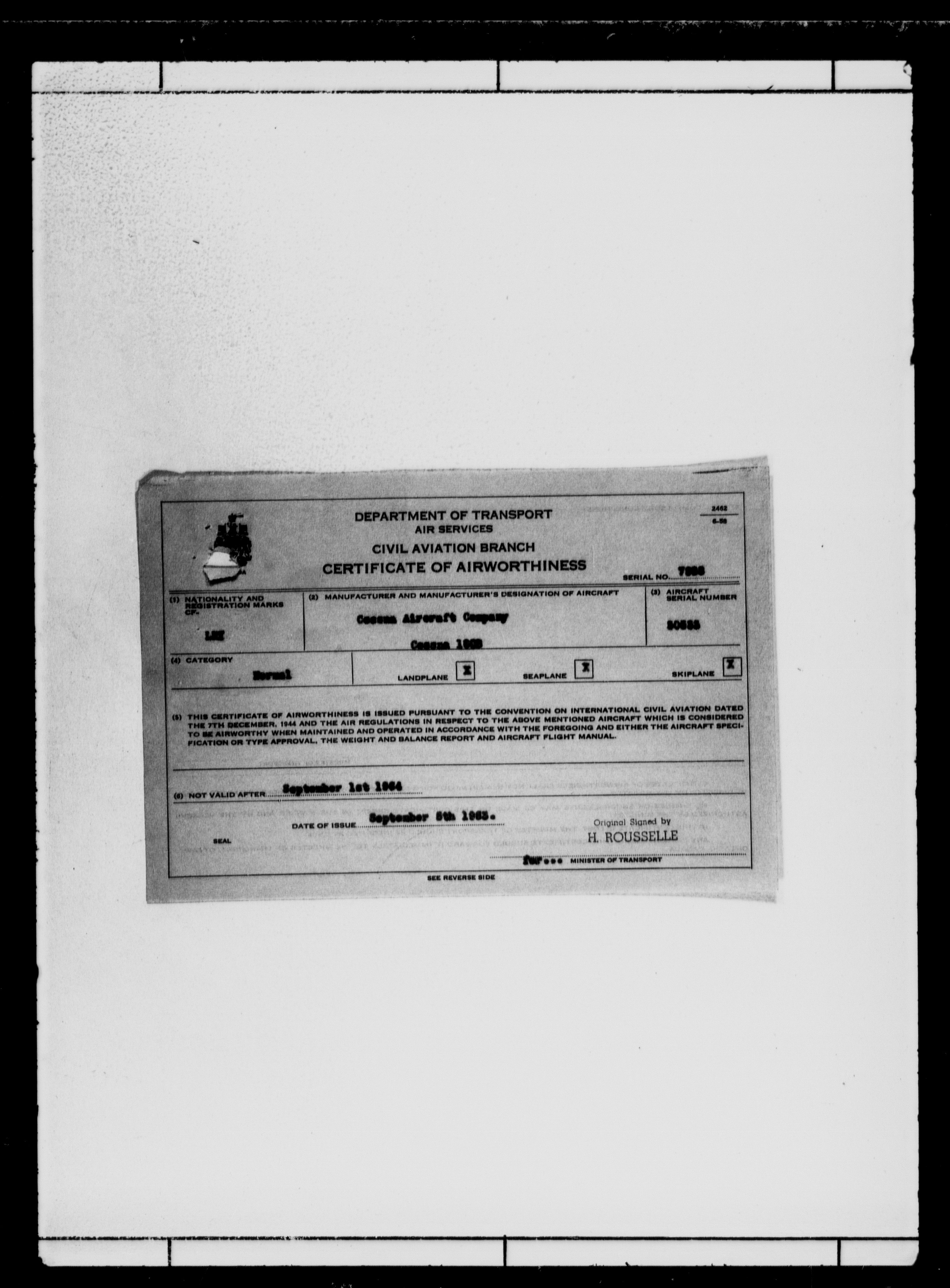 Department of Transport : Civil aircraft registration, inspection and operation files, block 5008, 1920-1986 - 7800