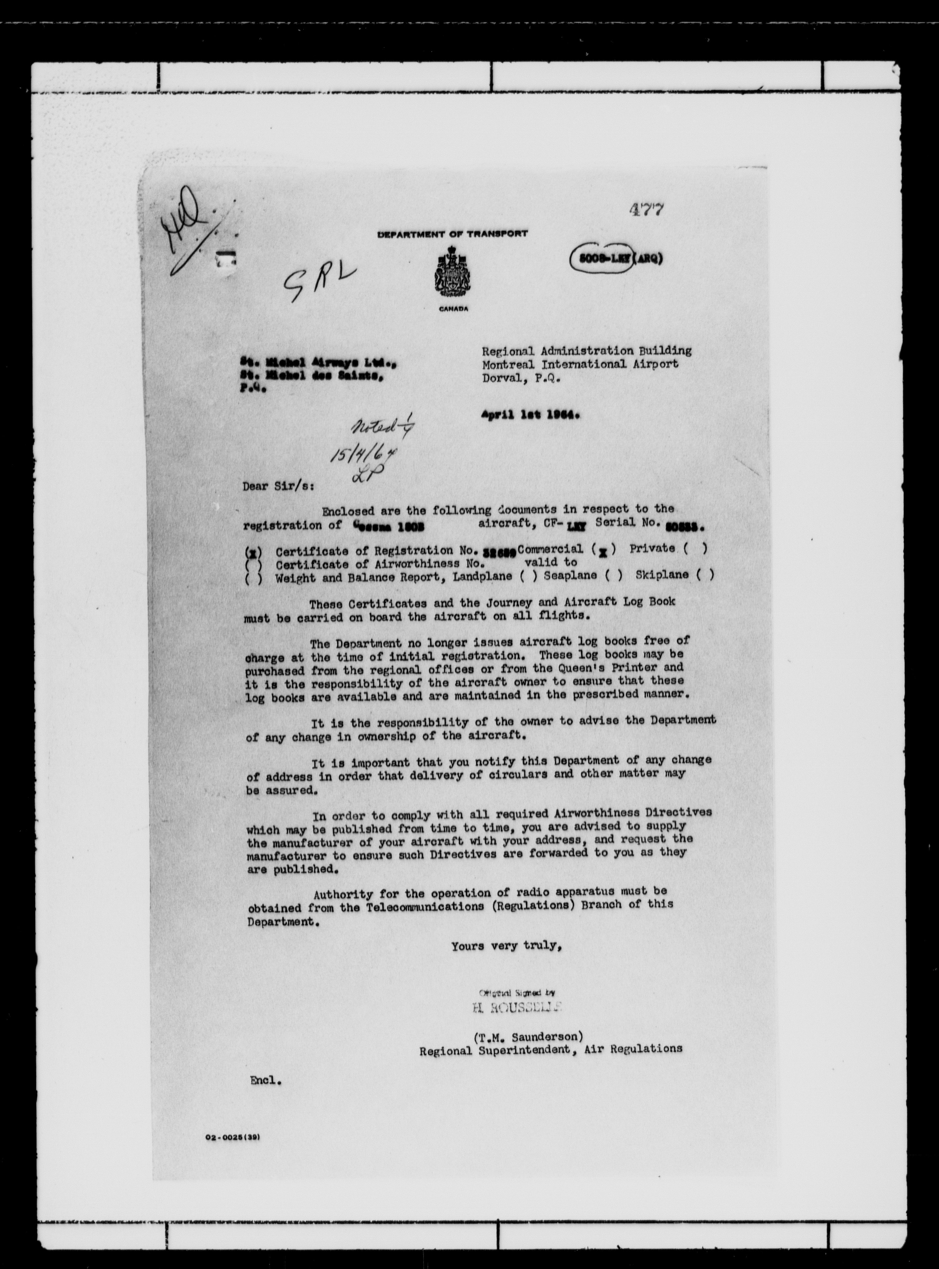 Department of Transport : Civil aircraft registration, inspection and operation files, block 5008, 1920-1986 - 7800
