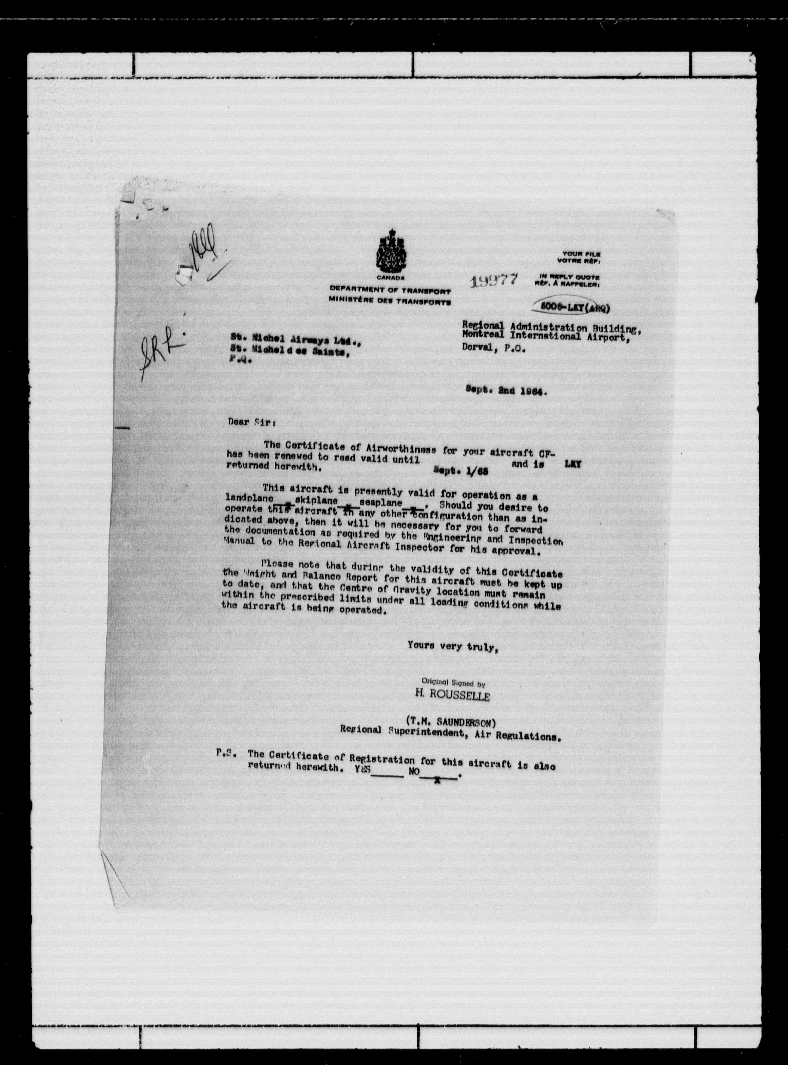 Department of Transport : Civil aircraft registration, inspection and operation files, block 5008, 1920-1986 - 7800