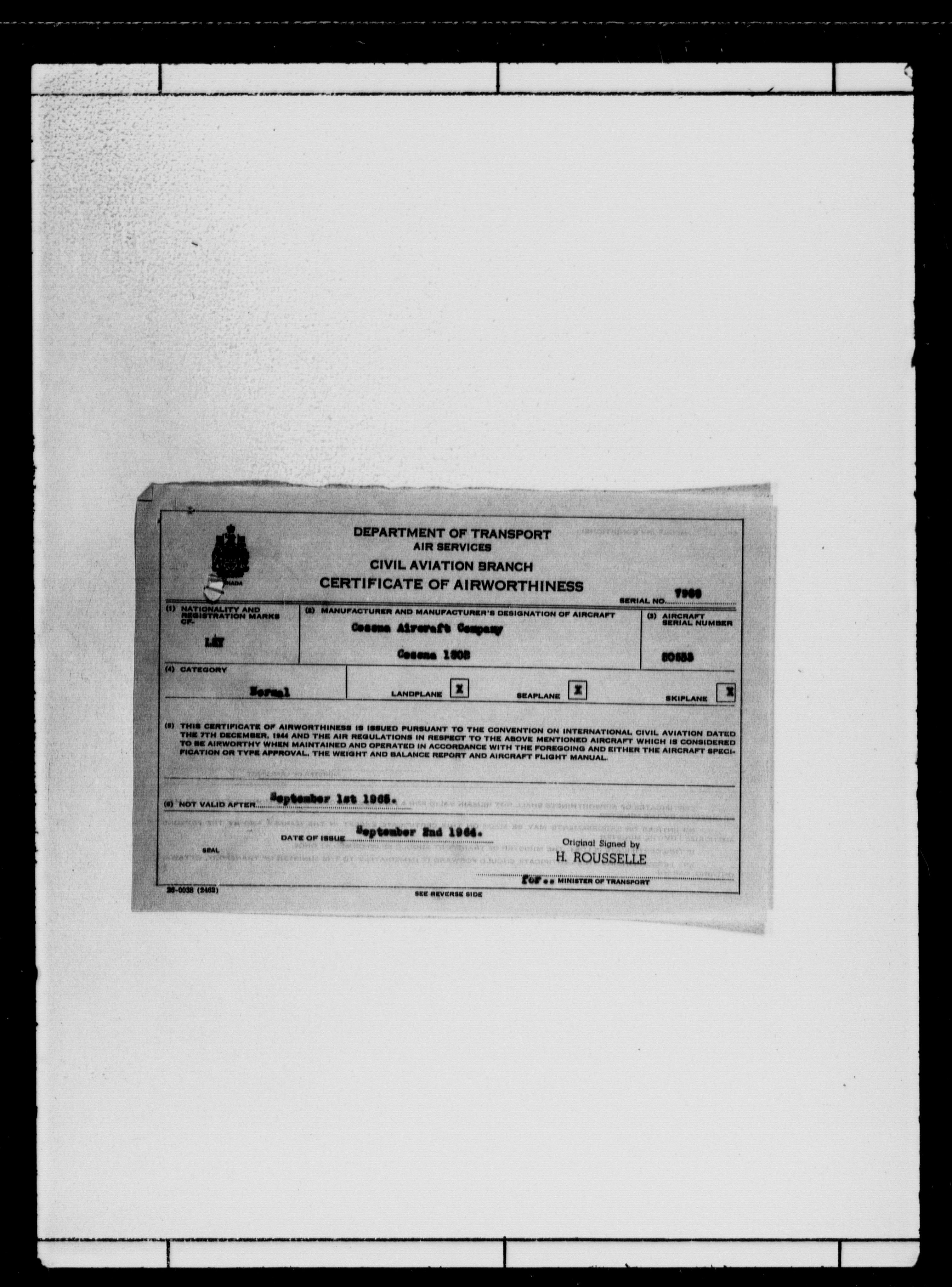 Department of Transport : Civil aircraft registration, inspection and operation files, block 5008, 1920-1986 - 7800