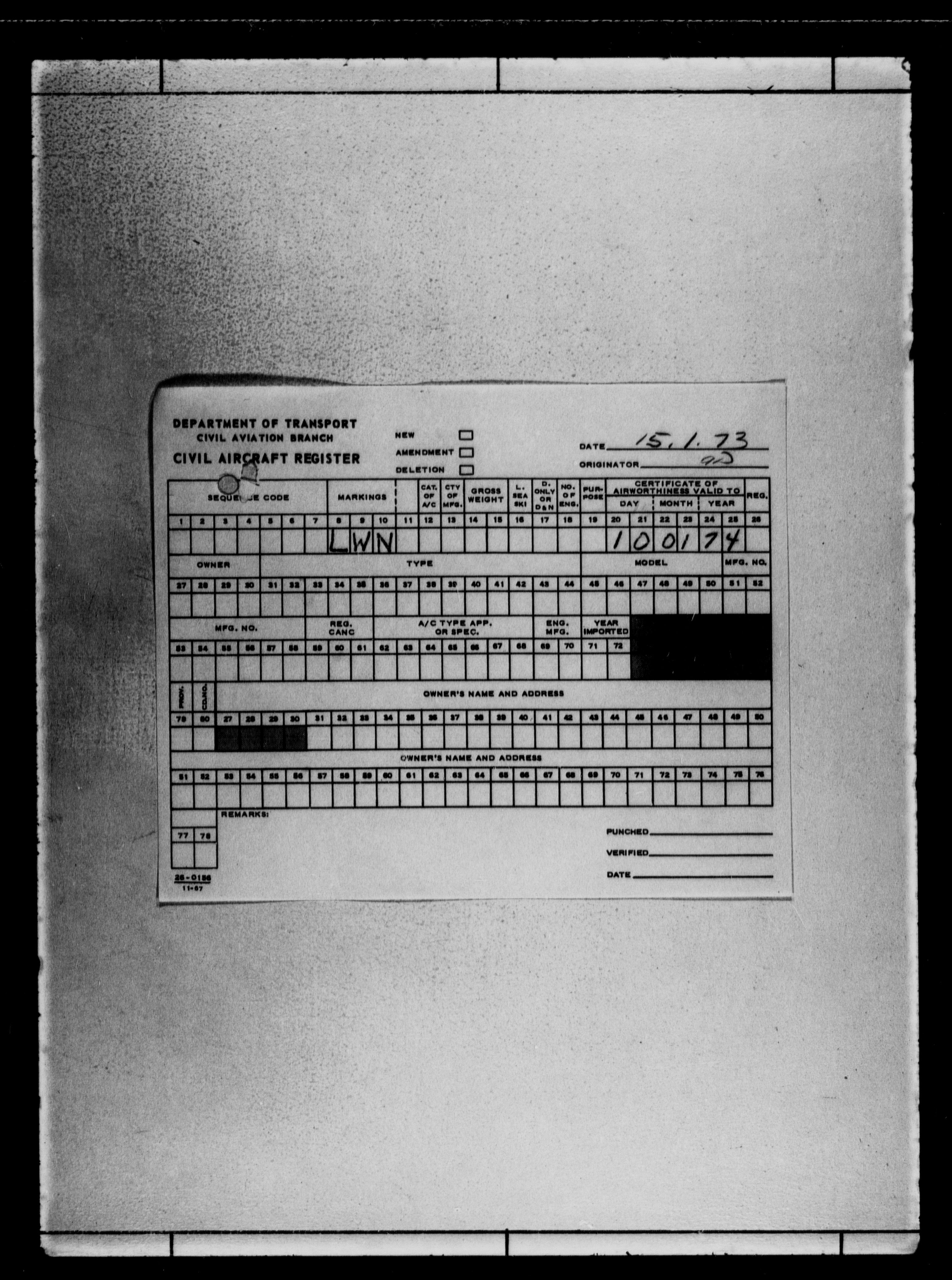 Department of Transport : Civil aircraft registration, inspection and operation files, block 5008, 1920-1986 - 7801