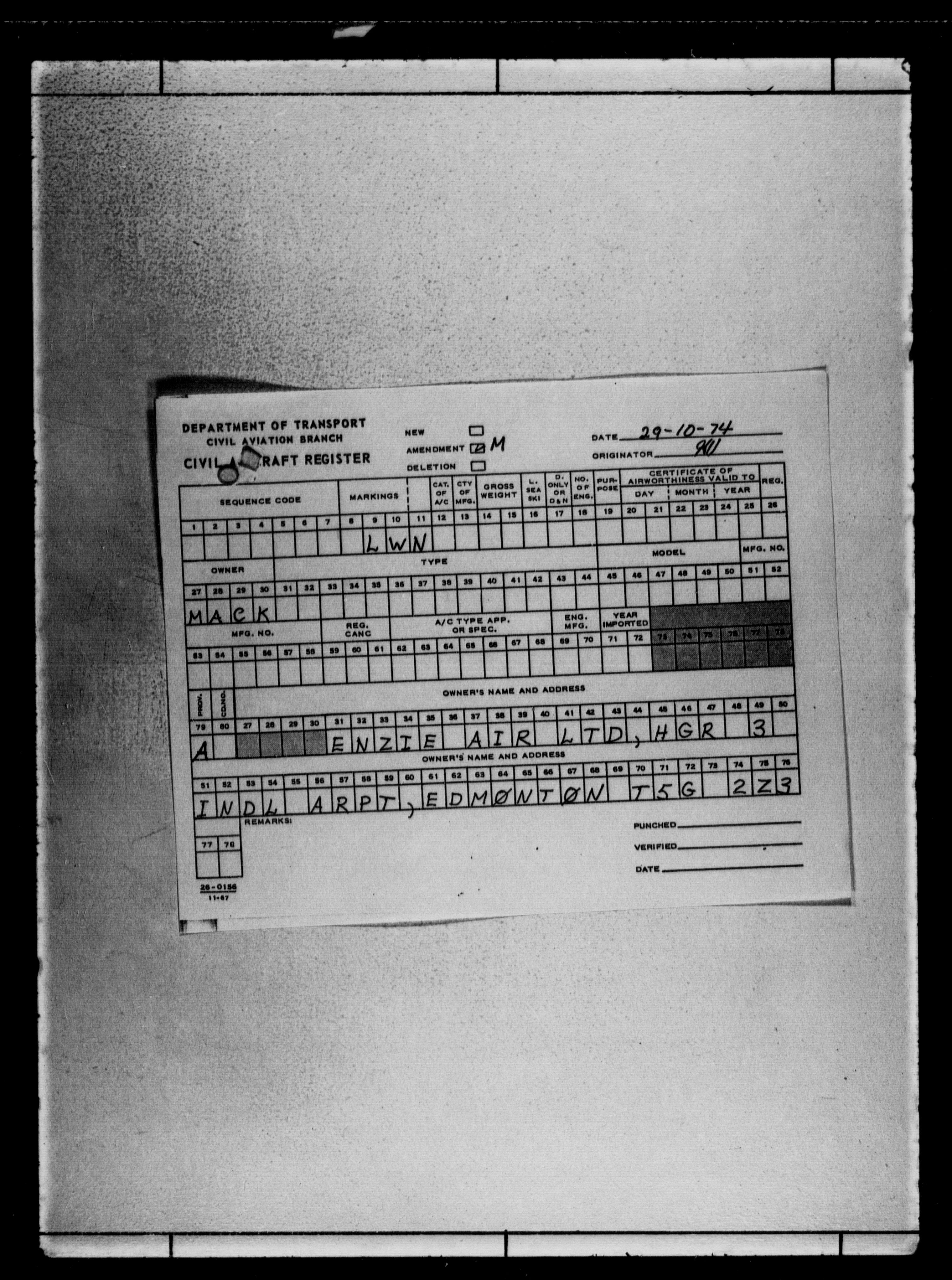 Department of Transport : Civil aircraft registration, inspection and operation files, block 5008, 1920-1986 - 7801