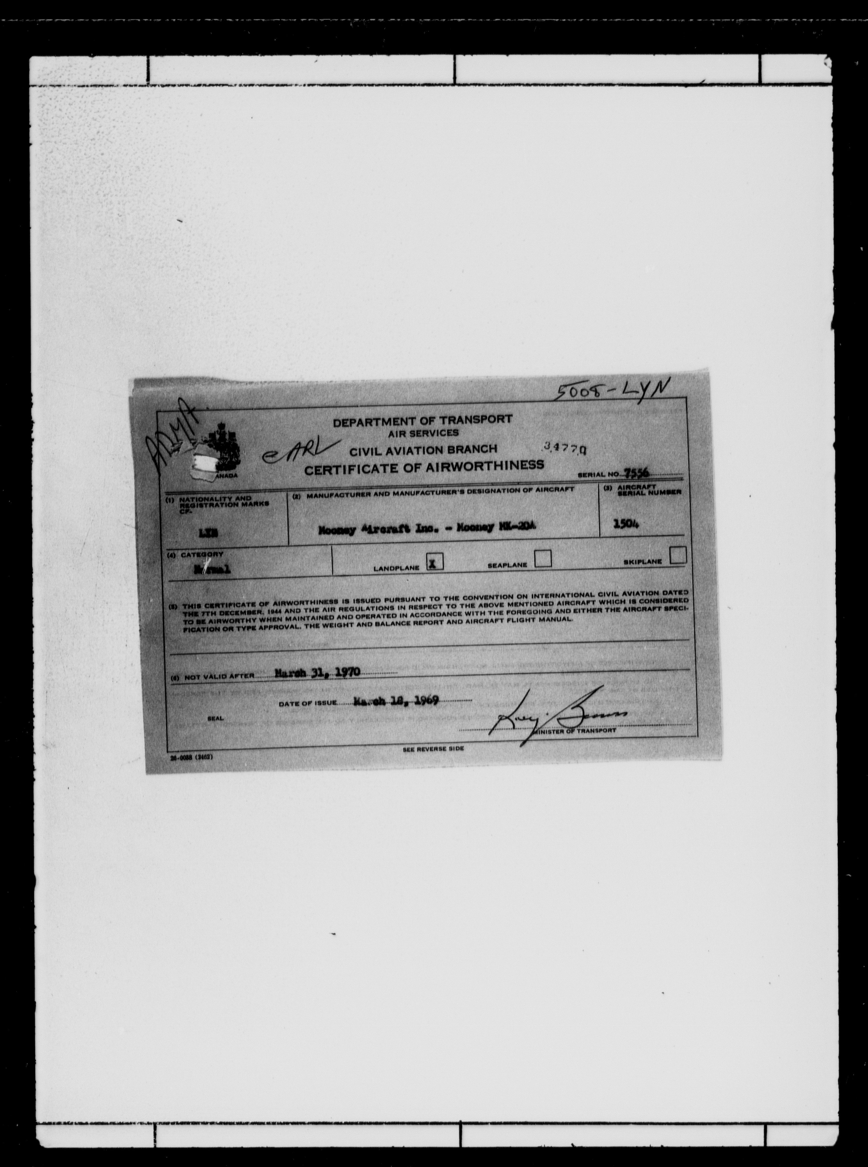 Department of Transport : Civil aircraft registration, inspection and operation files, block 5008, 1920-1986 - 7802