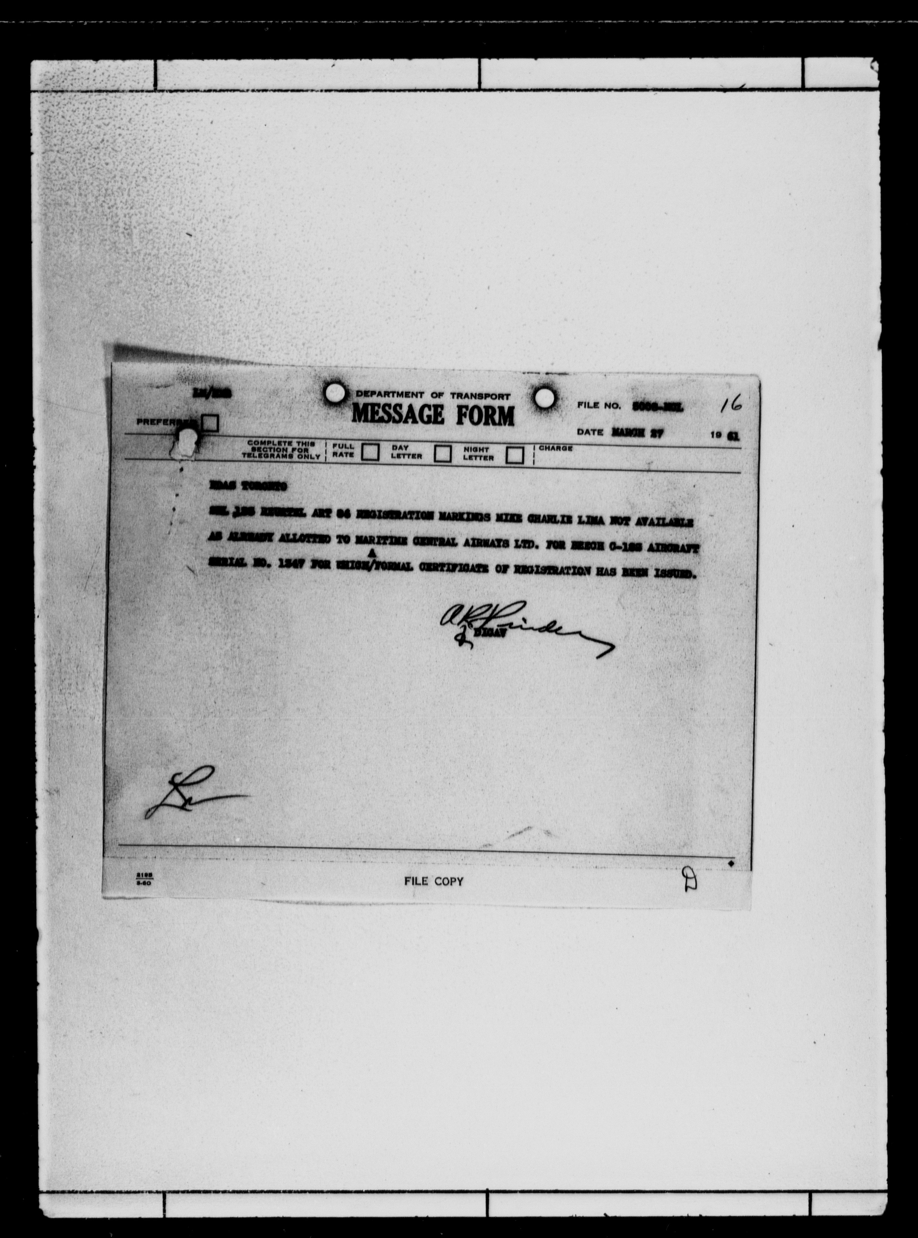 Department of Transport : Civil aircraft registration, inspection and operation files, block 5008, 1920-1986 - 7802