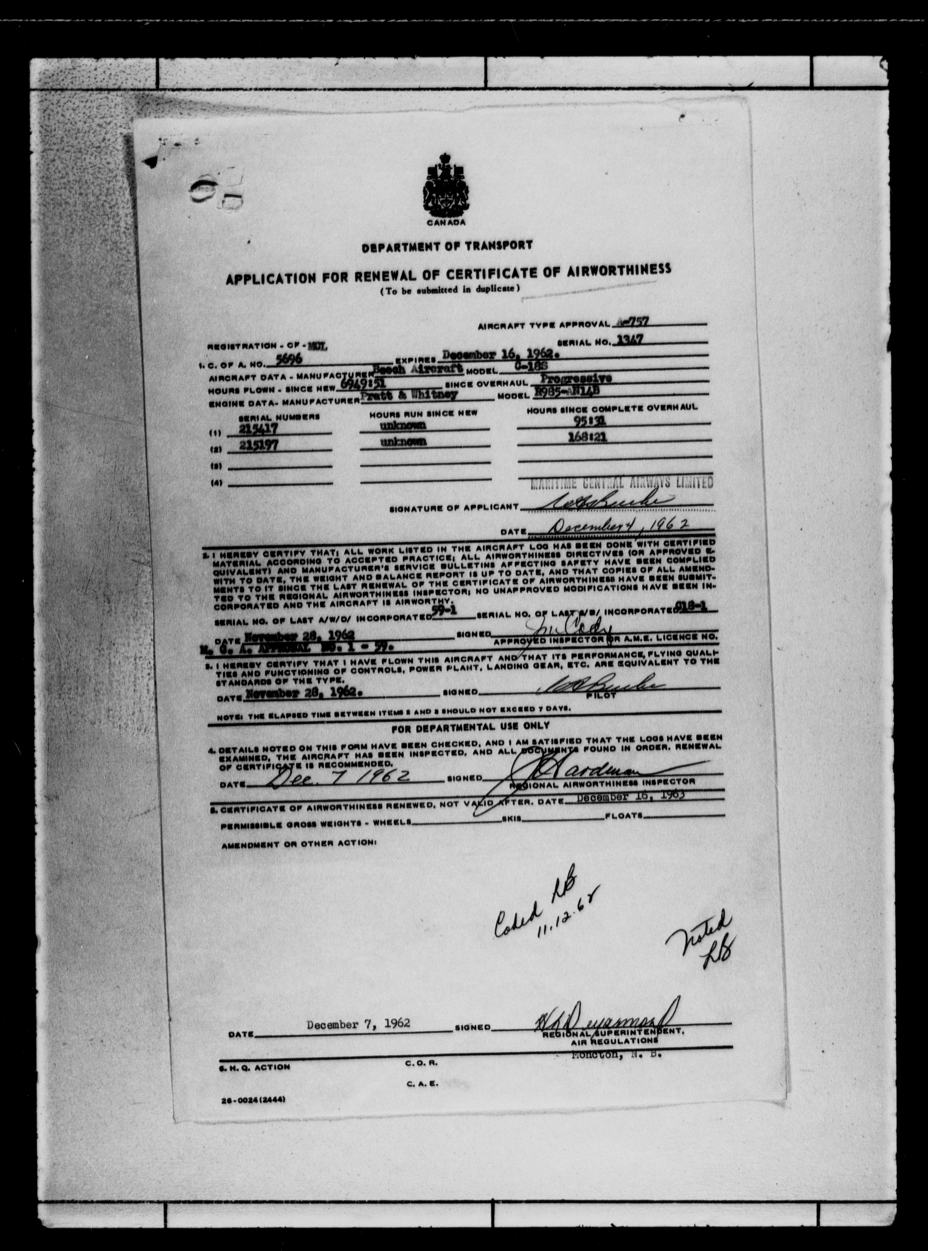 Department of Transport : Civil aircraft registration, inspection and operation files, block 5008, 1920-1986 - 7802