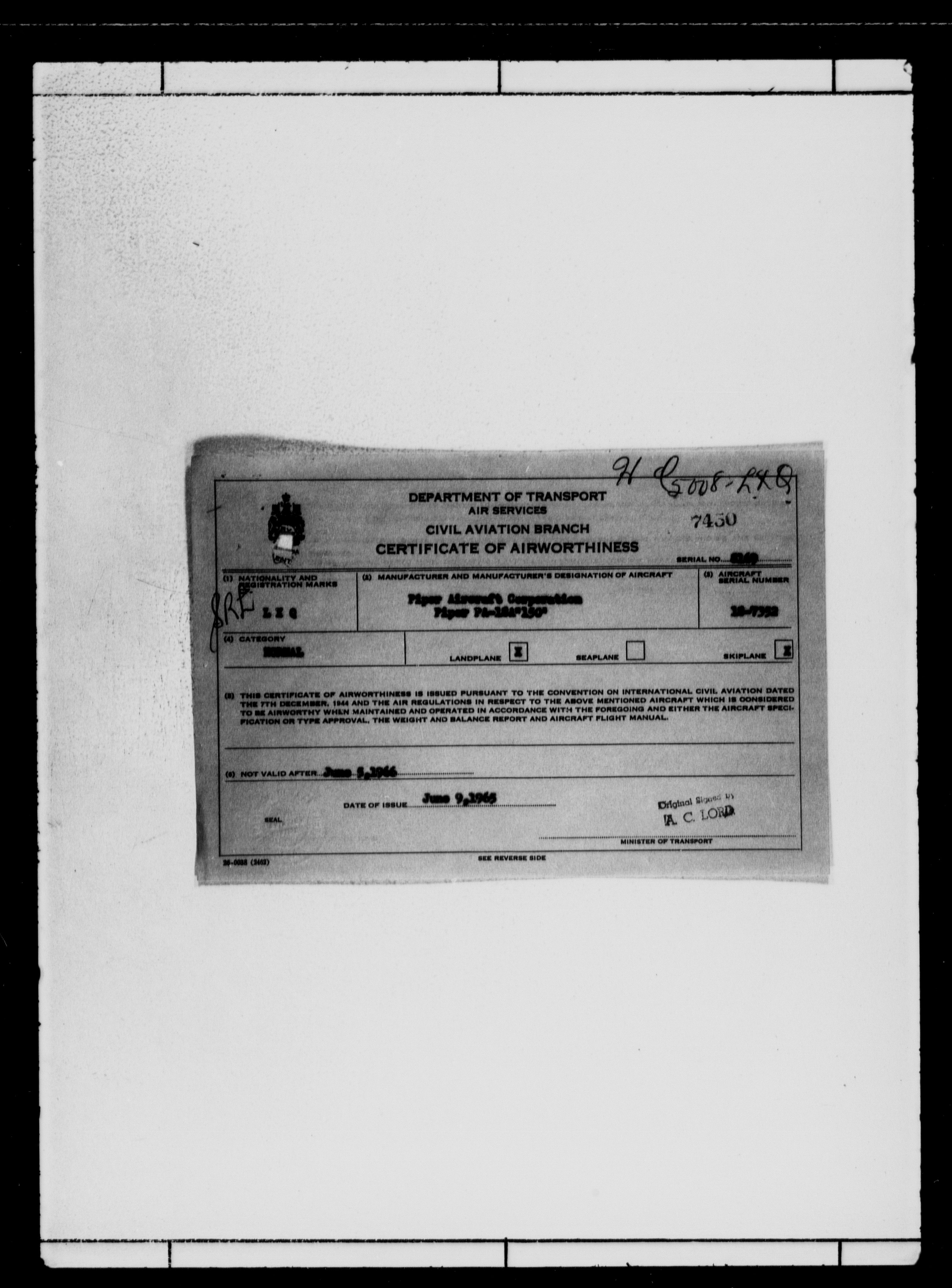Department of Transport : Civil aircraft registration, inspection and operation files, block 5008, 1920-1986 - 7802