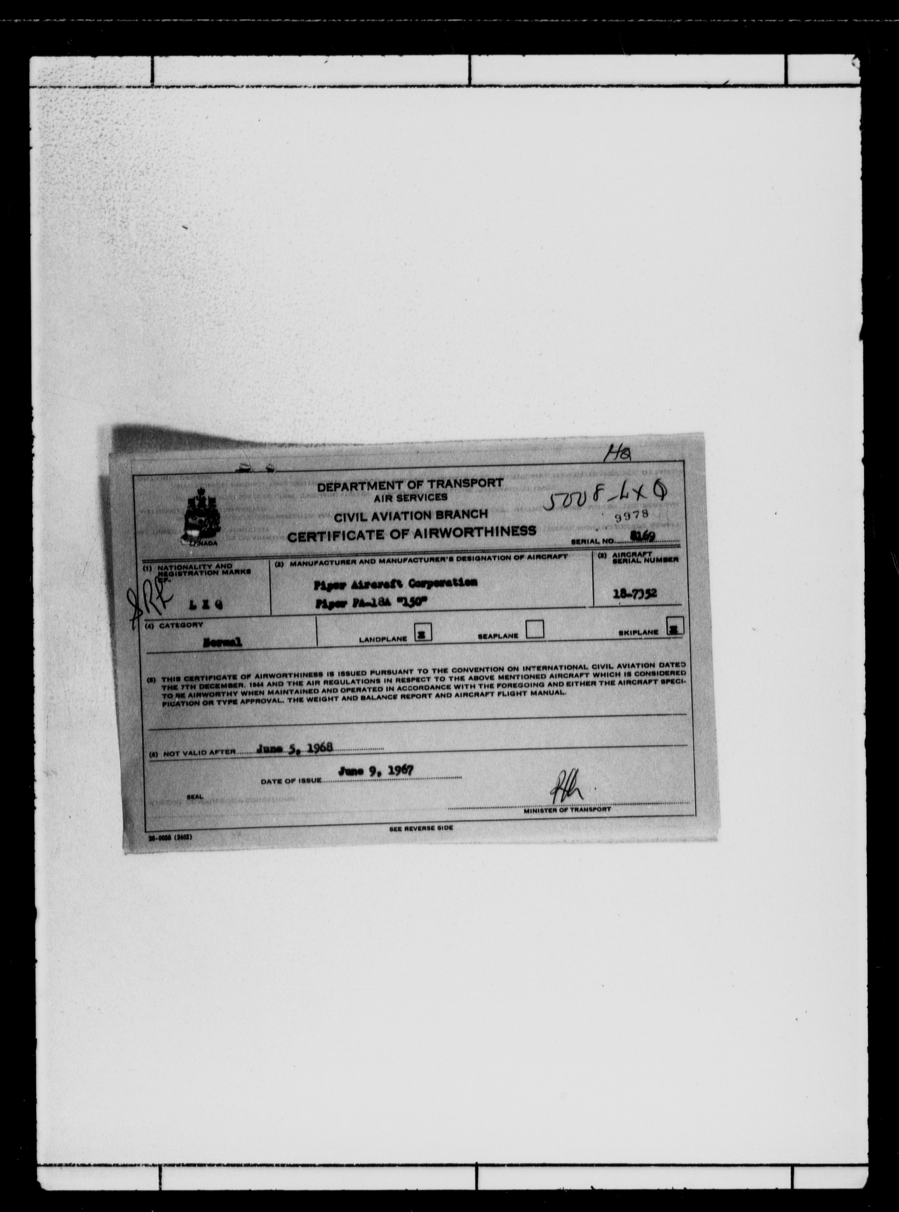 Department of Transport : Civil aircraft registration, inspection and operation files, block 5008, 1920-1986 - 7802