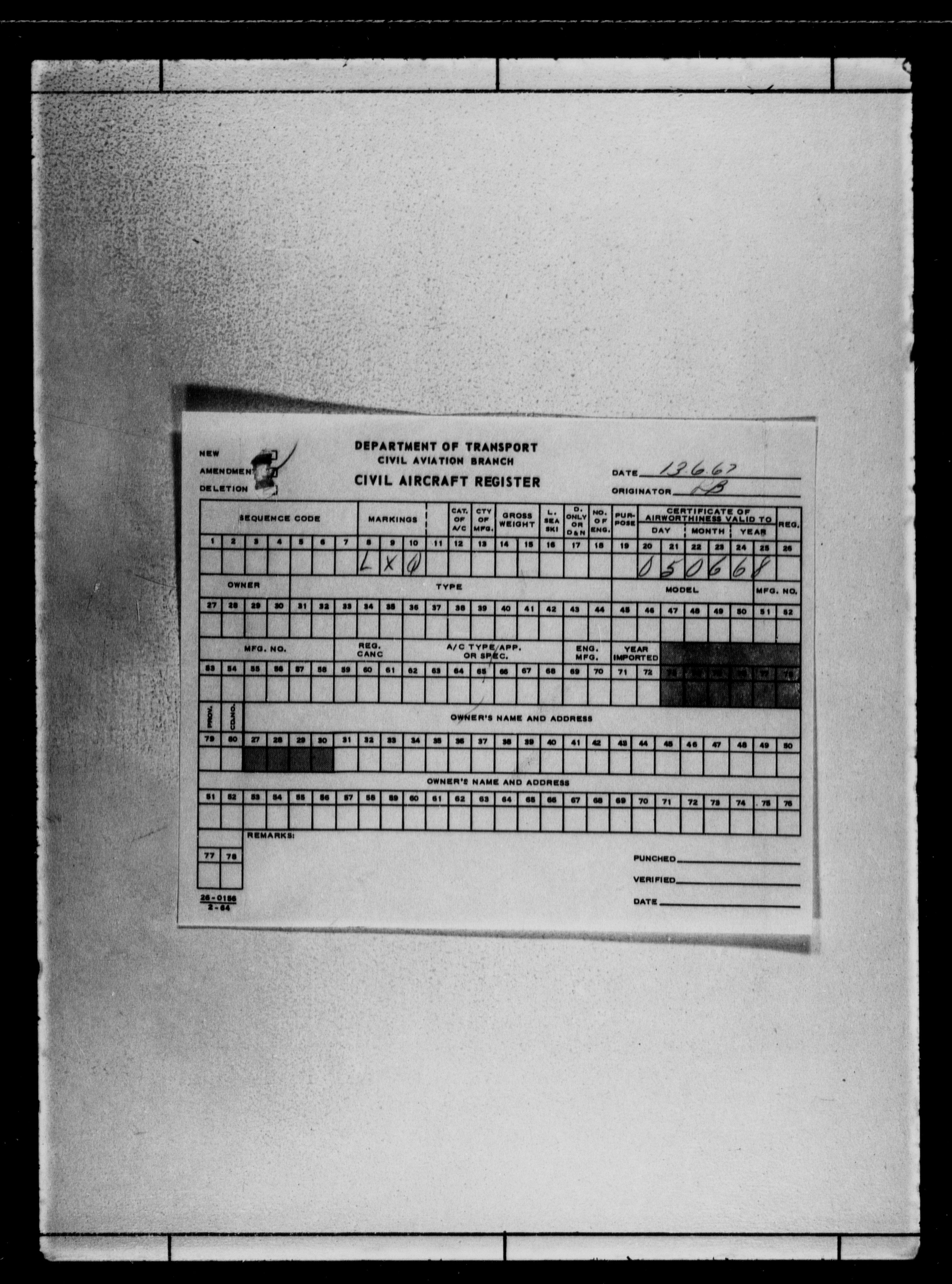 Department of Transport : Civil aircraft registration, inspection and operation files, block 5008, 1920-1986 - 7802