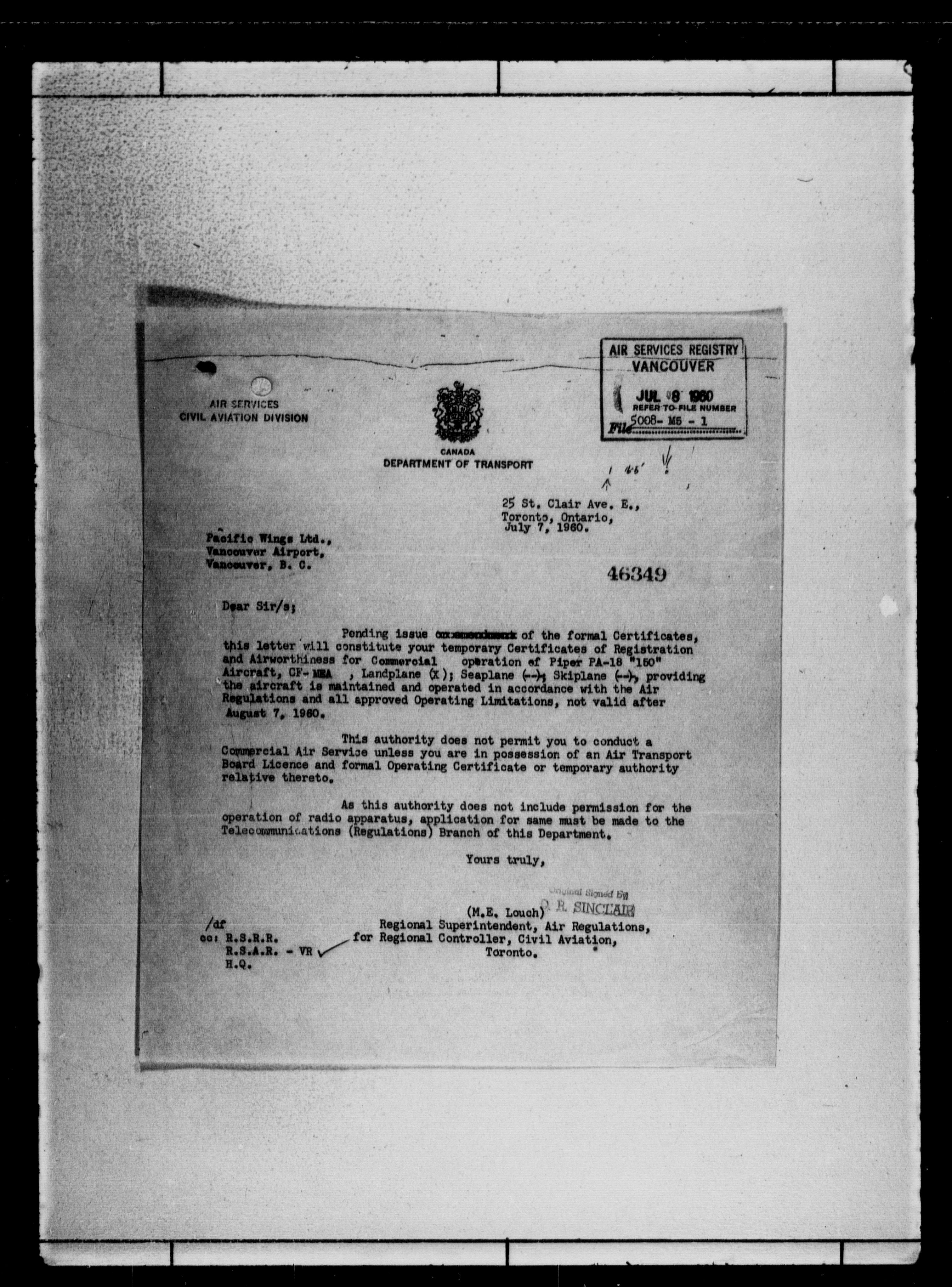 Department of Transport : Civil aircraft registration, inspection and operation files, block 5008, 1920-1986 - 7803