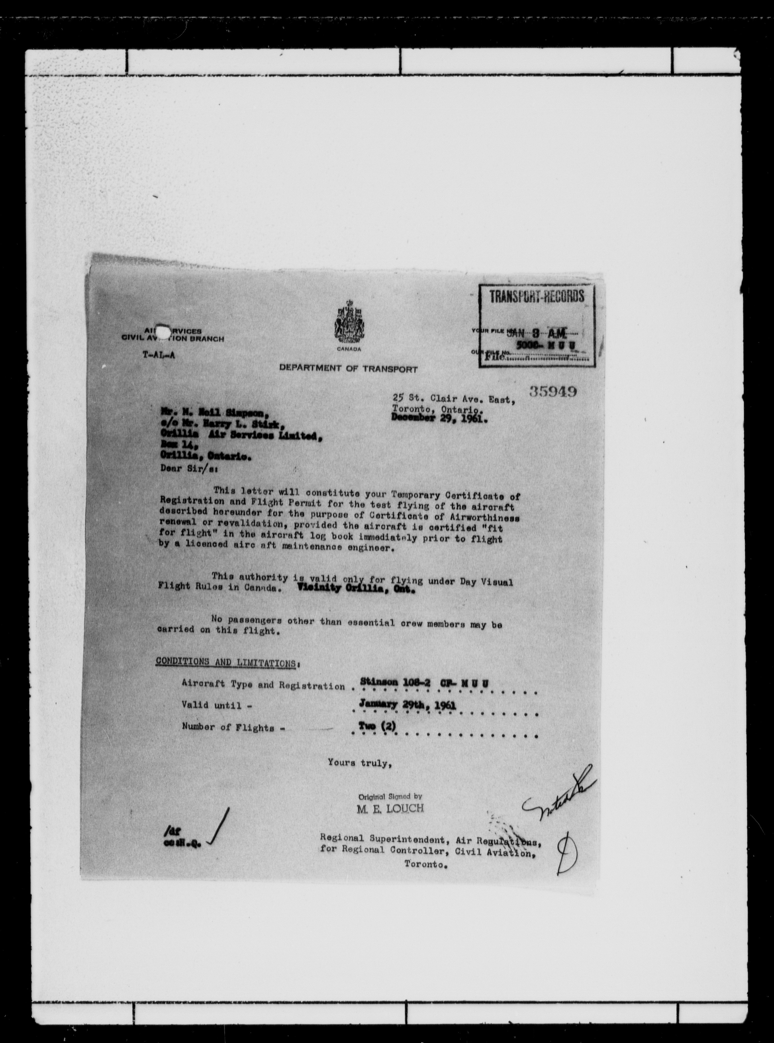 Department of Transport : Civil aircraft registration, inspection and operation files, block 5008, 1920-1986 - 7805