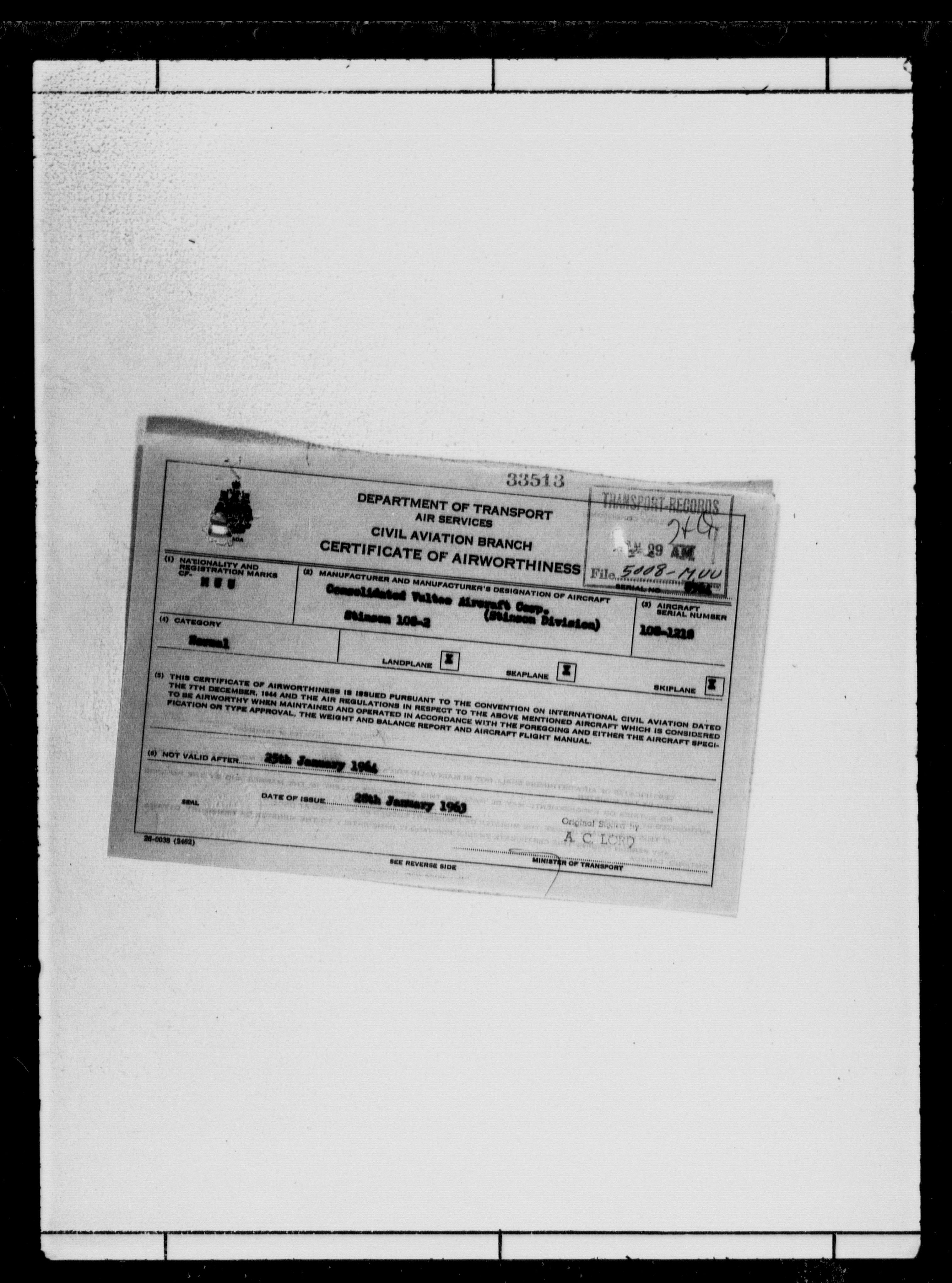 Department of Transport : Civil aircraft registration, inspection and operation files, block 5008, 1920-1986 - 7805