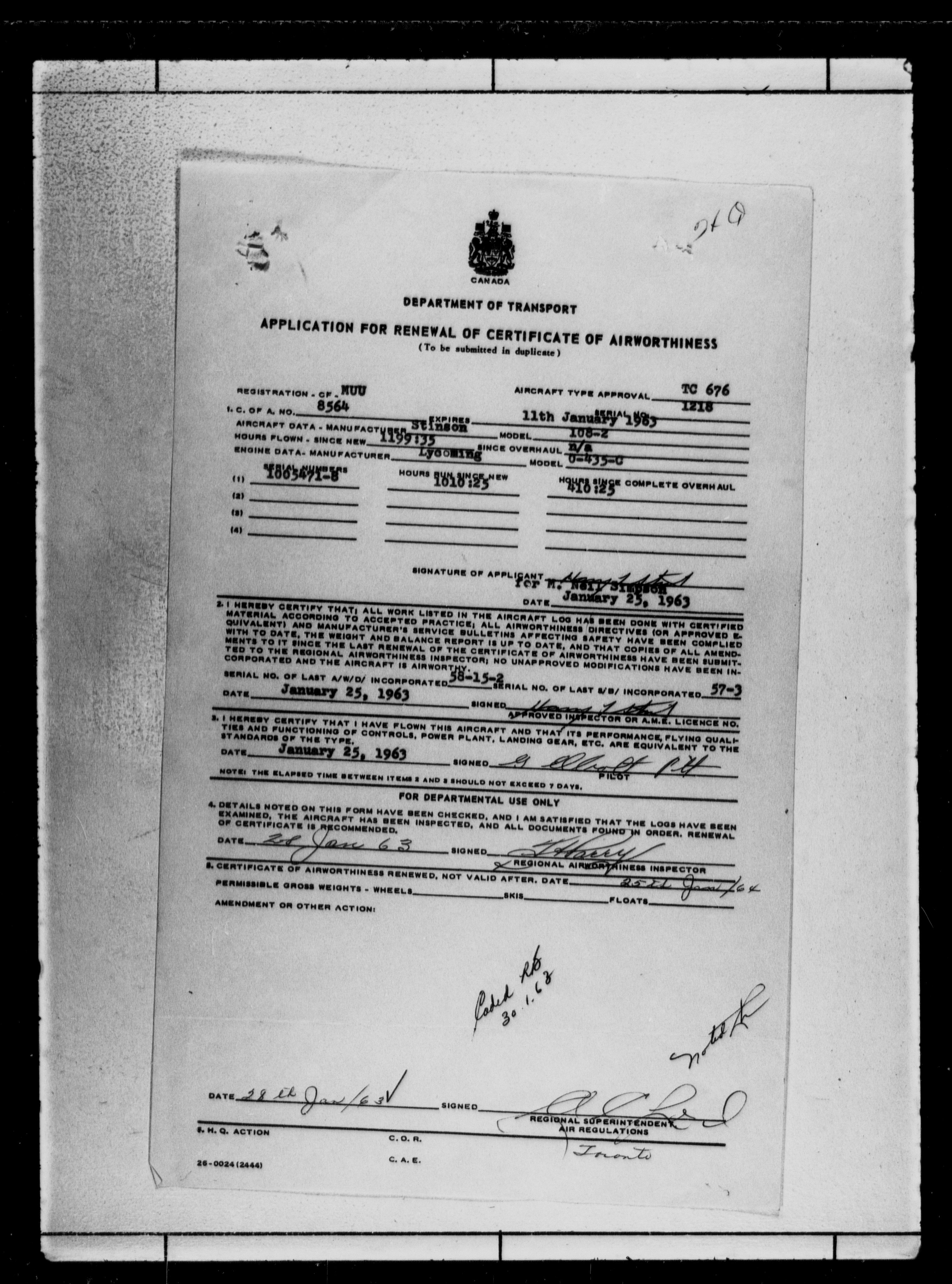 Department of Transport : Civil aircraft registration, inspection and operation files, block 5008, 1920-1986 - 7805