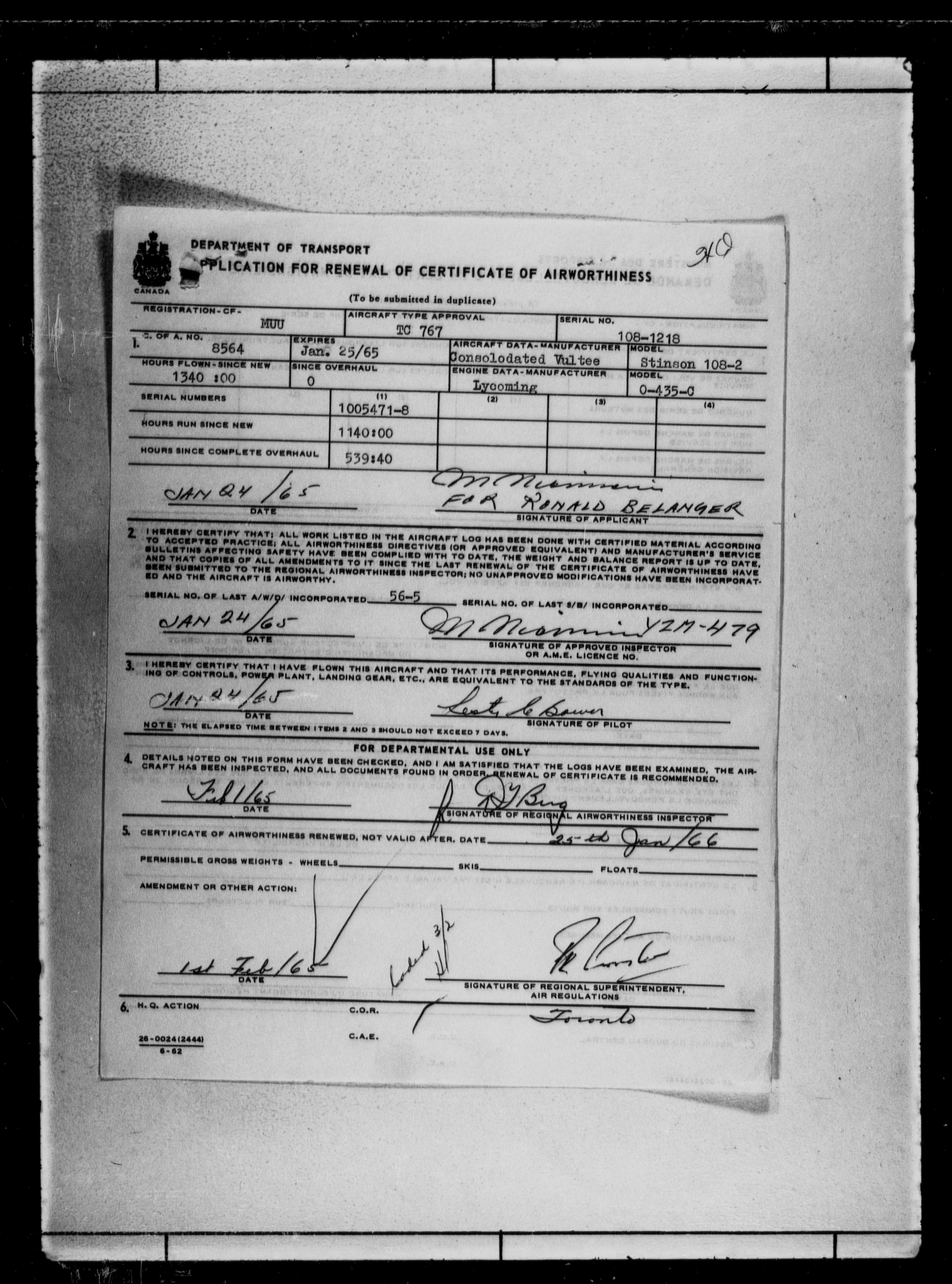Department of Transport : Civil aircraft registration, inspection and operation files, block 5008, 1920-1986 - 7805