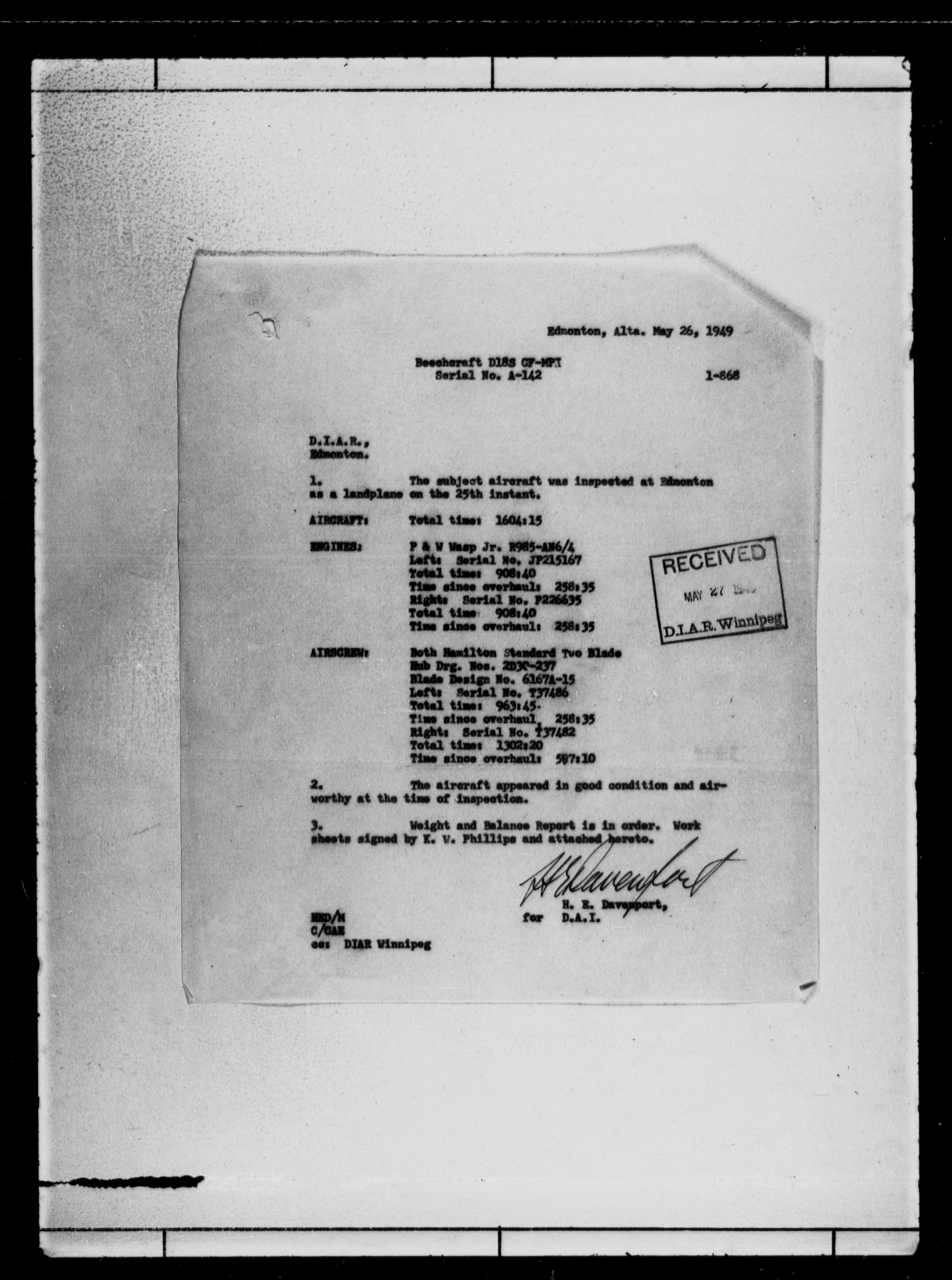 Department of Transport : Civil aircraft registration, inspection and operation files, block 5008, 1920-1986 - 7805