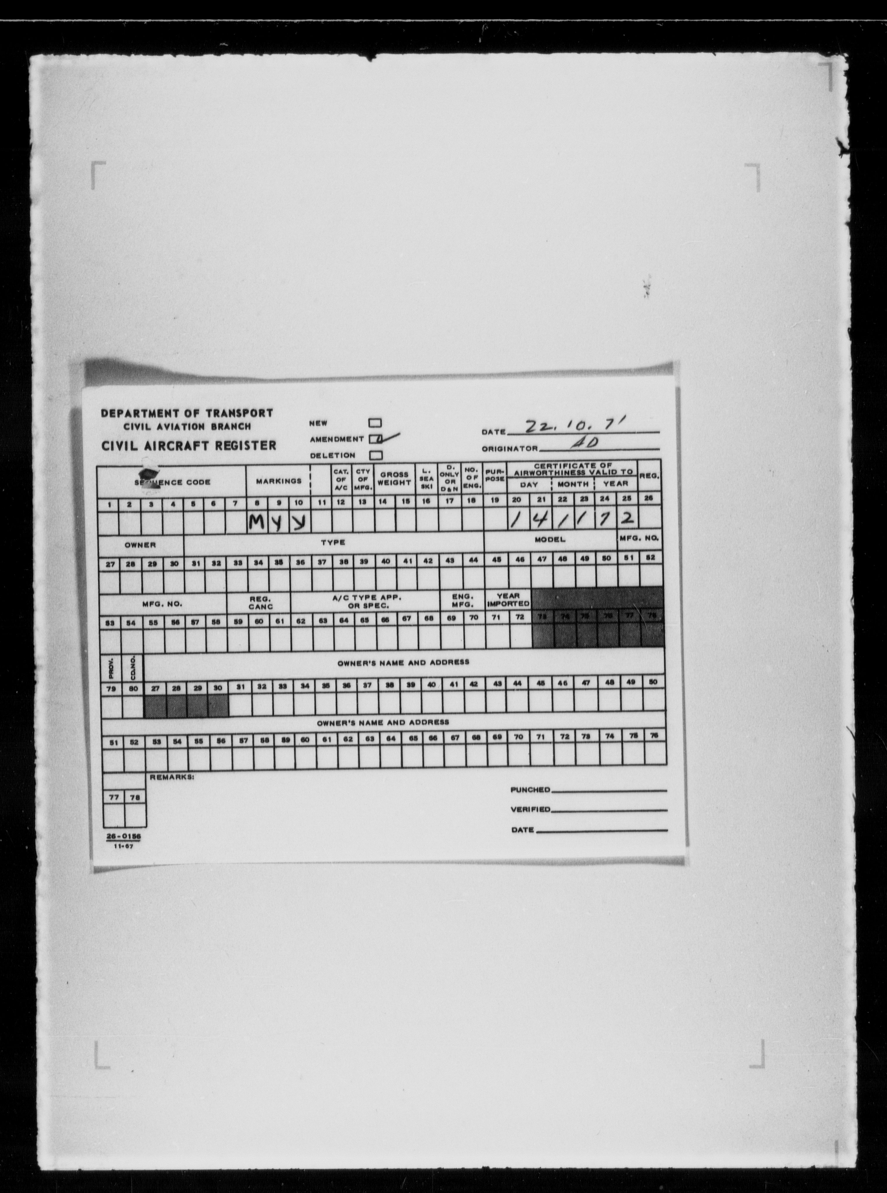 Department of Transport : Civil aircraft registration, inspection and operation files, block 5008, 1920-1986 - 7806