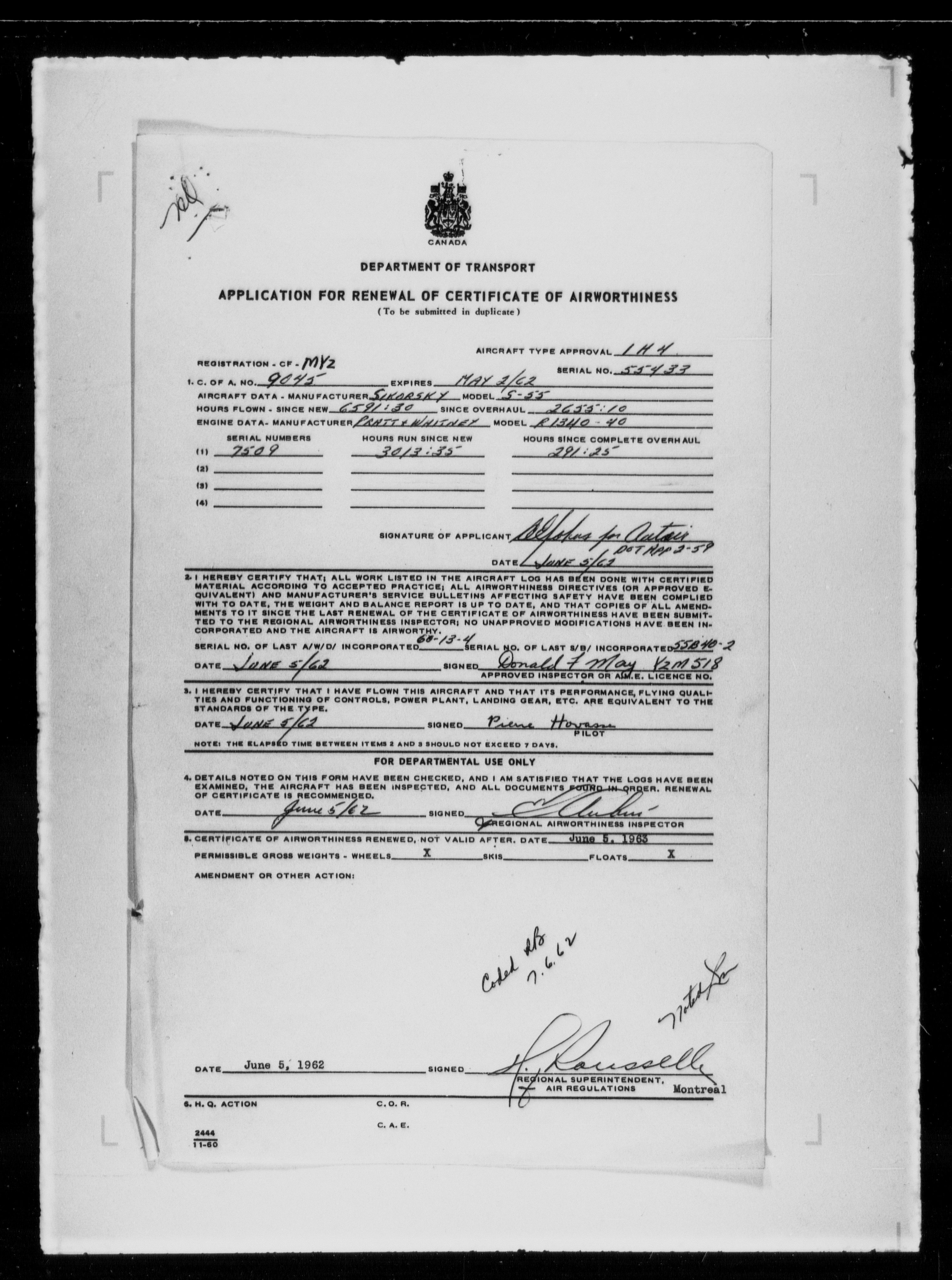 Department of Transport : Civil aircraft registration, inspection and operation files, block 5008, 1920-1986 - 7806
