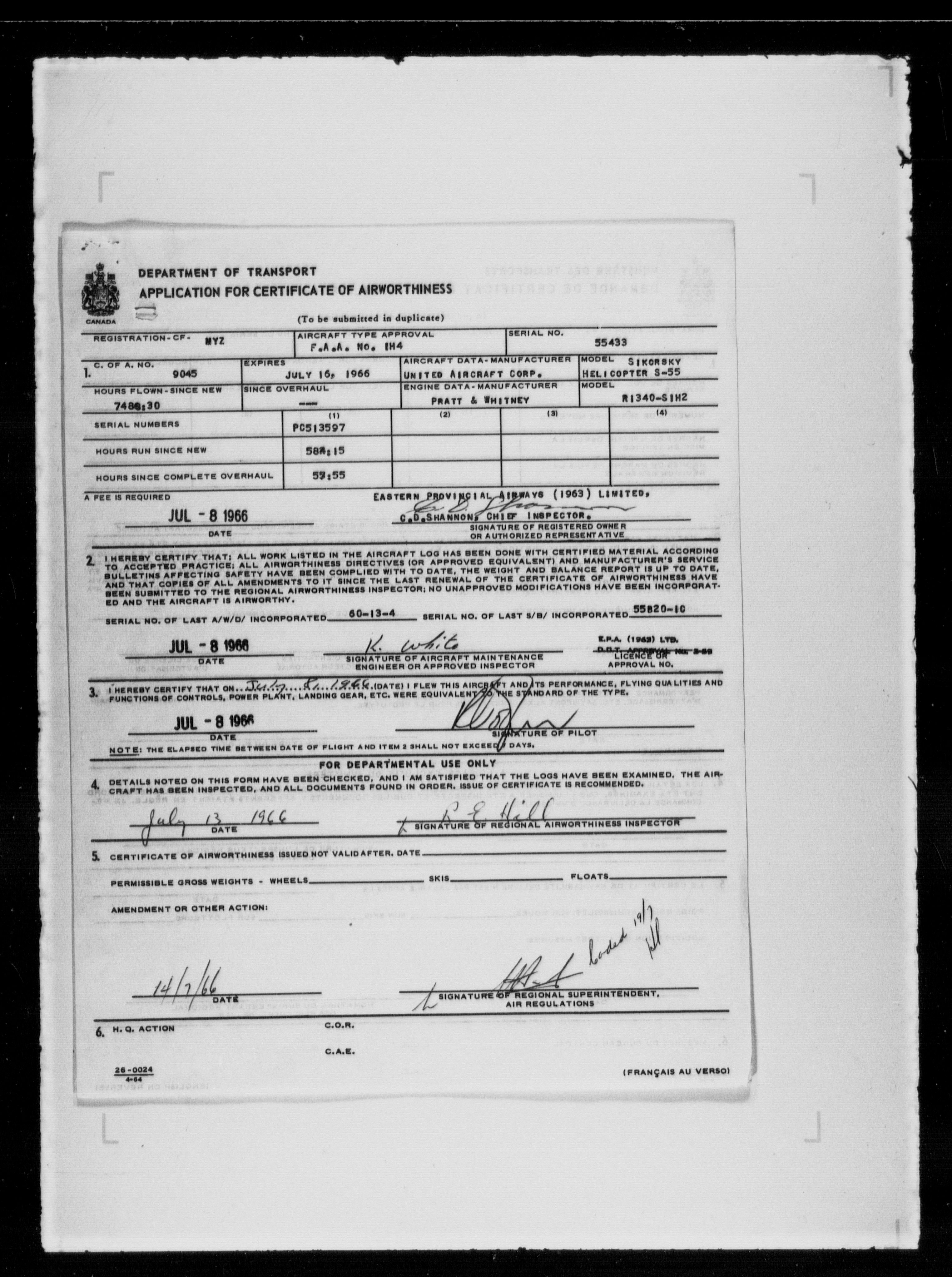 Department of Transport : Civil aircraft registration, inspection and operation files, block 5008, 1920-1986 - 7806