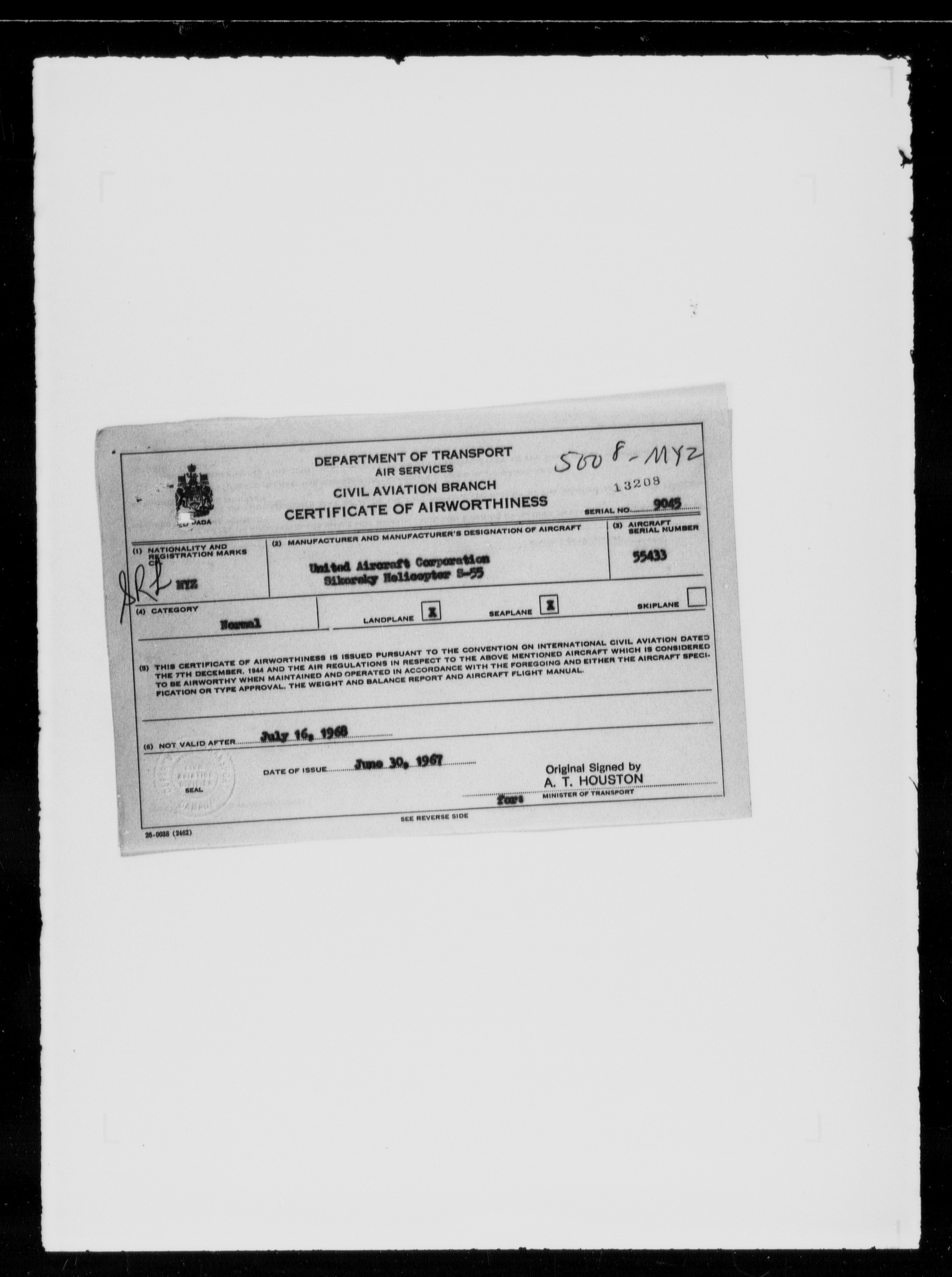 Department of Transport : Civil aircraft registration, inspection and operation files, block 5008, 1920-1986 - 7806
