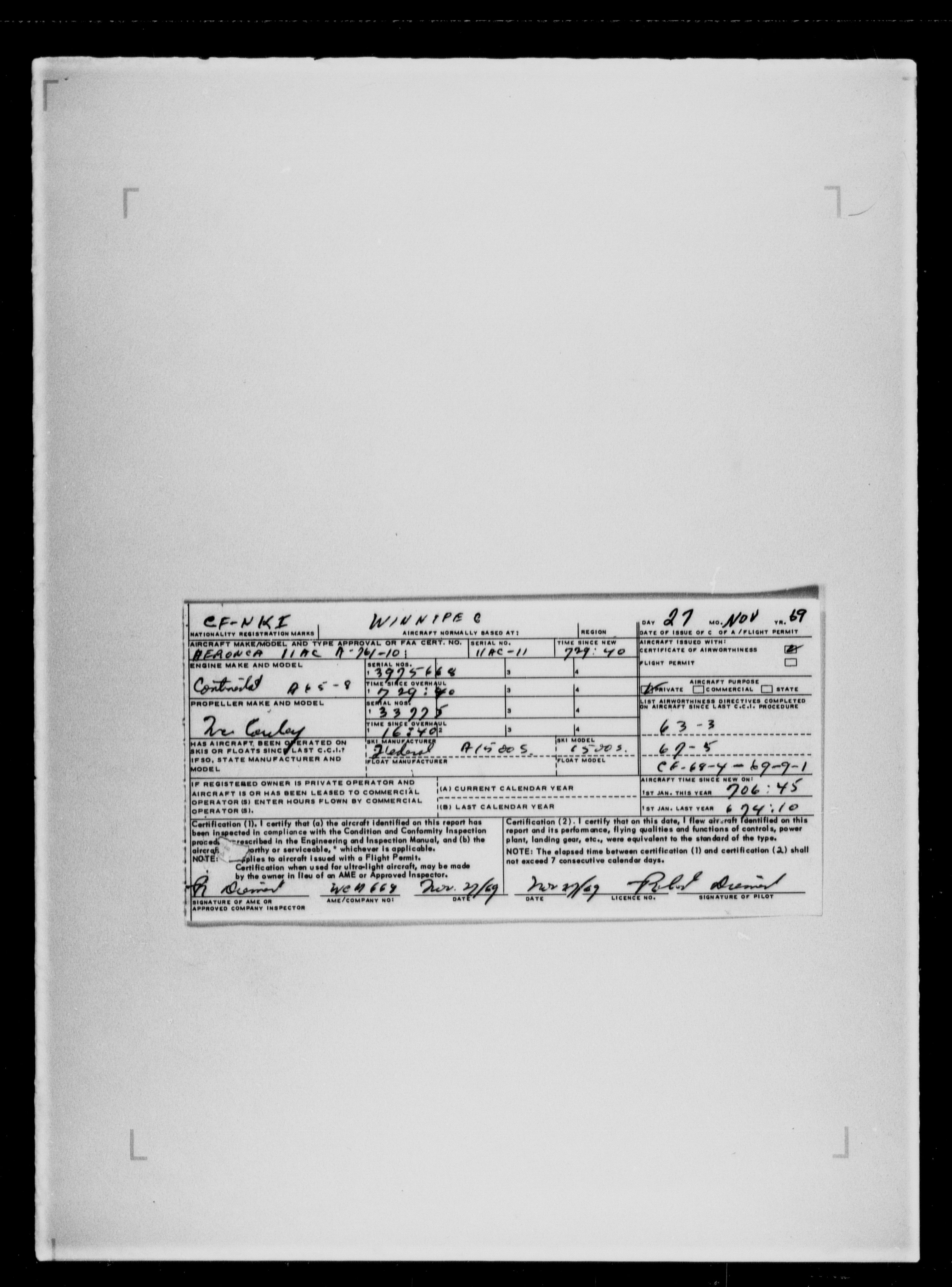 Department of Transport : Civil aircraft registration, inspection and operation files, block 5008, 1920-1986 - 7808