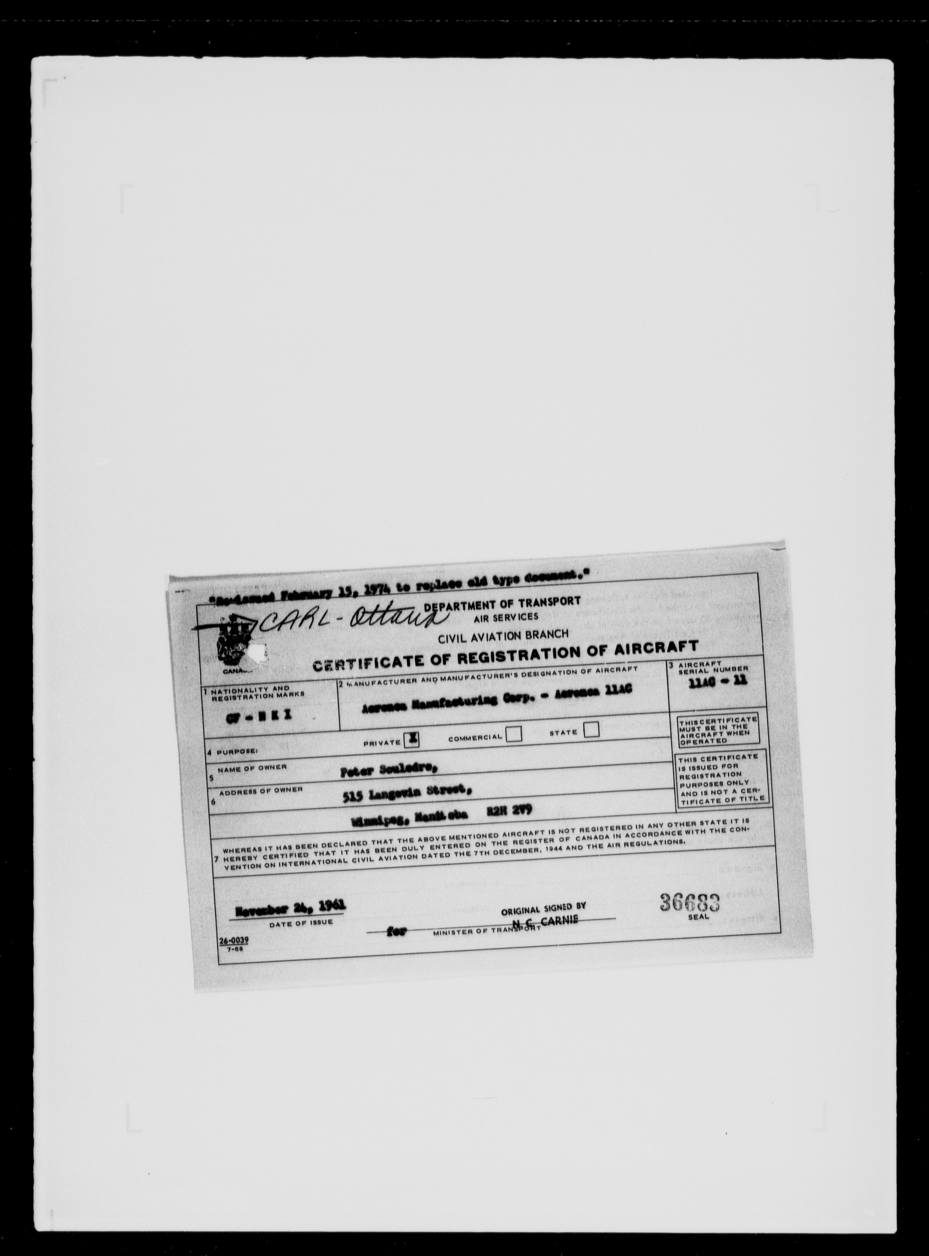 Department of Transport : Civil aircraft registration, inspection and operation files, block 5008, 1920-1986 - 7808