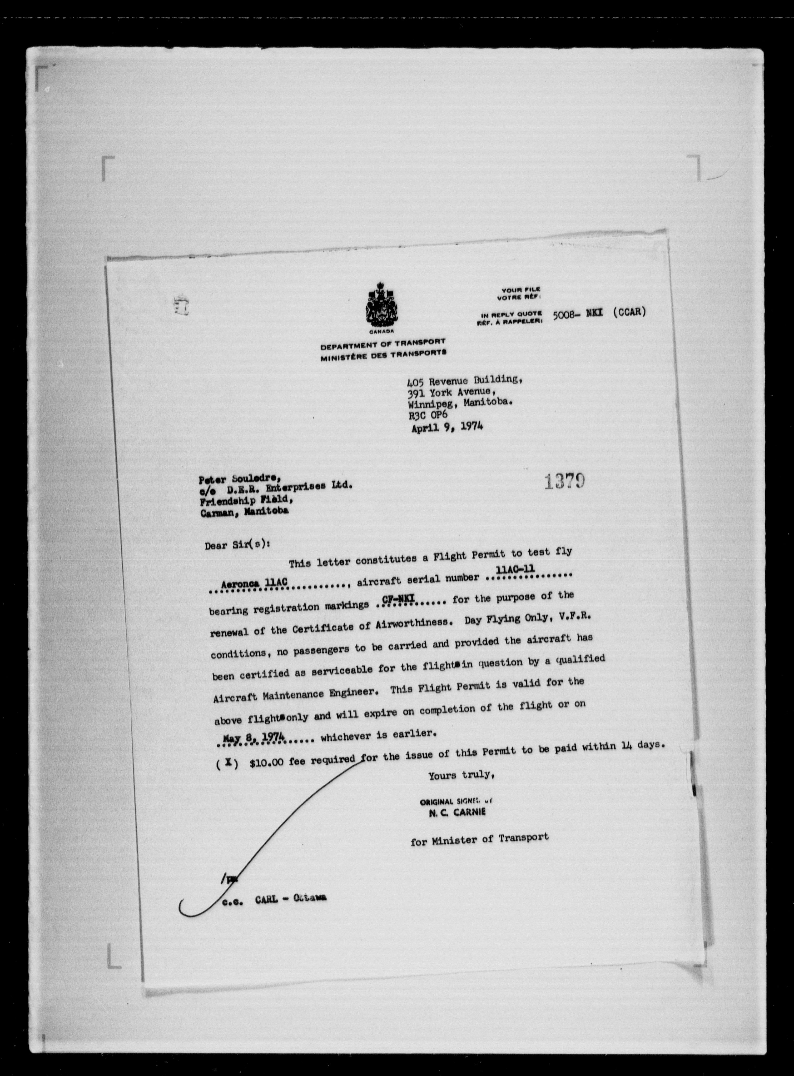 Department of Transport : Civil aircraft registration, inspection and operation files, block 5008, 1920-1986 - 7808