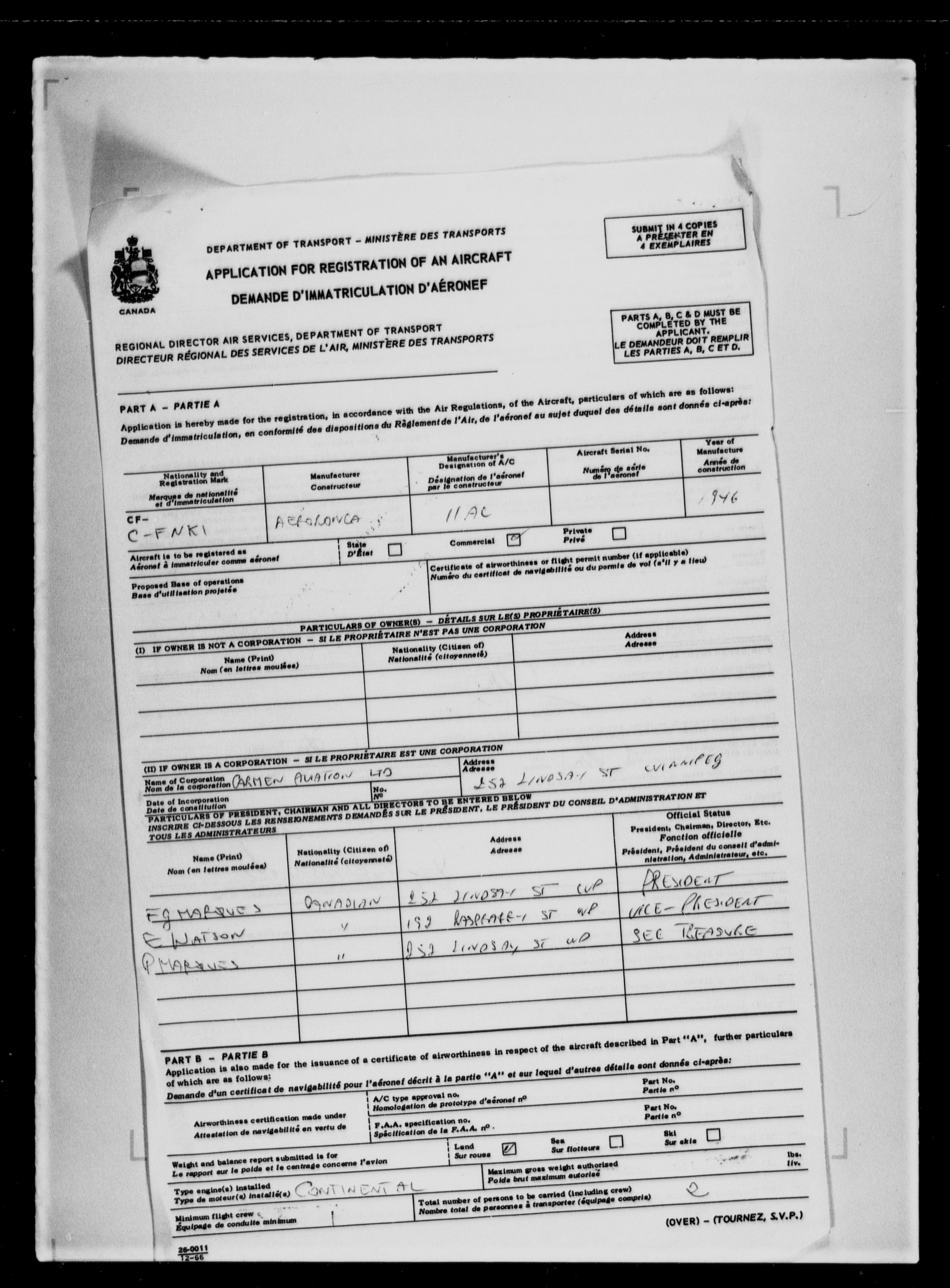 Department of Transport : Civil aircraft registration, inspection and operation files, block 5008, 1920-1986 - 7808