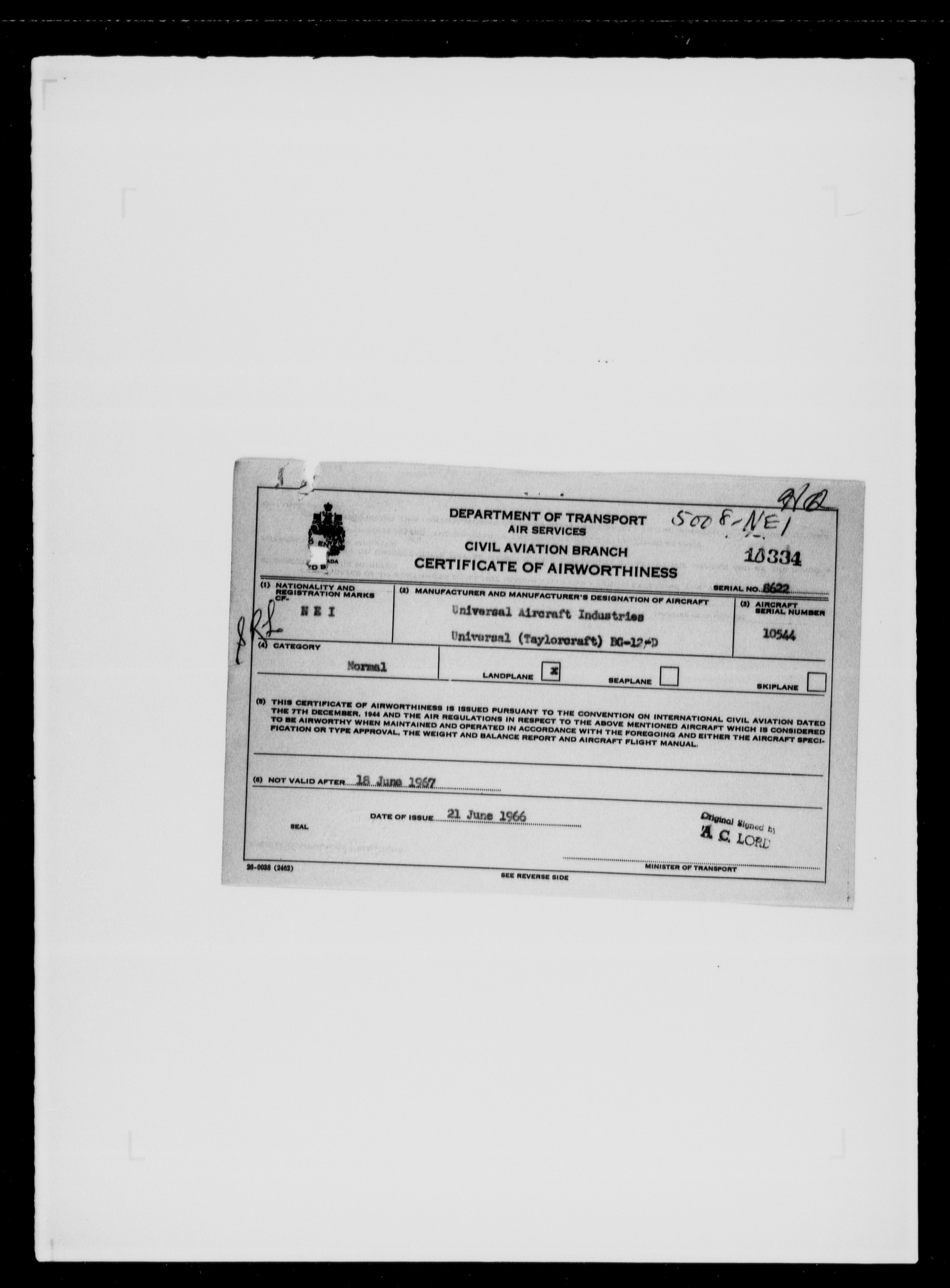 Department of Transport : Civil aircraft registration, inspection and operation files, block 5008, 1920-1986 - 7808