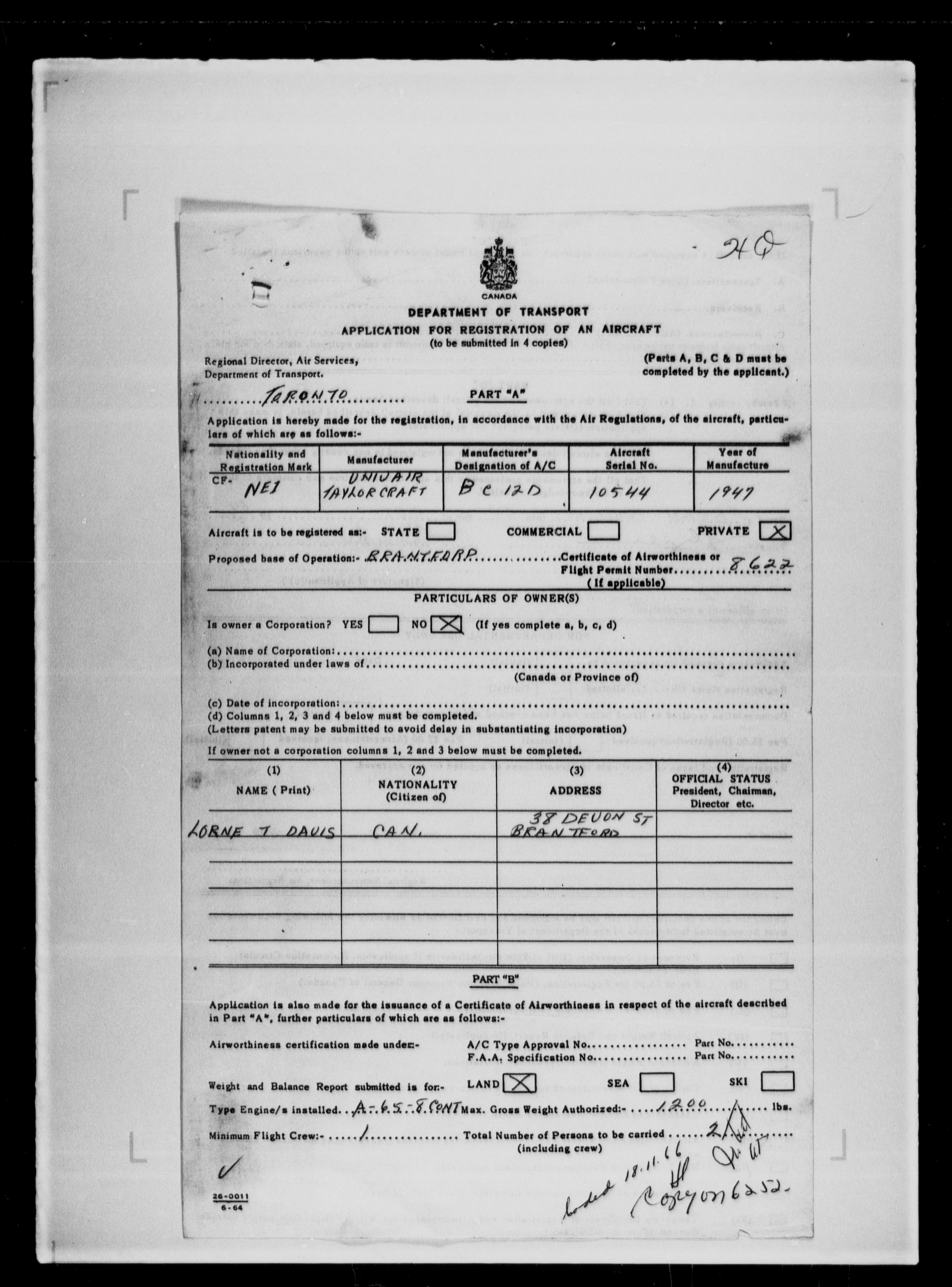 Department of Transport : Civil aircraft registration, inspection and operation files, block 5008, 1920-1986 - 7808