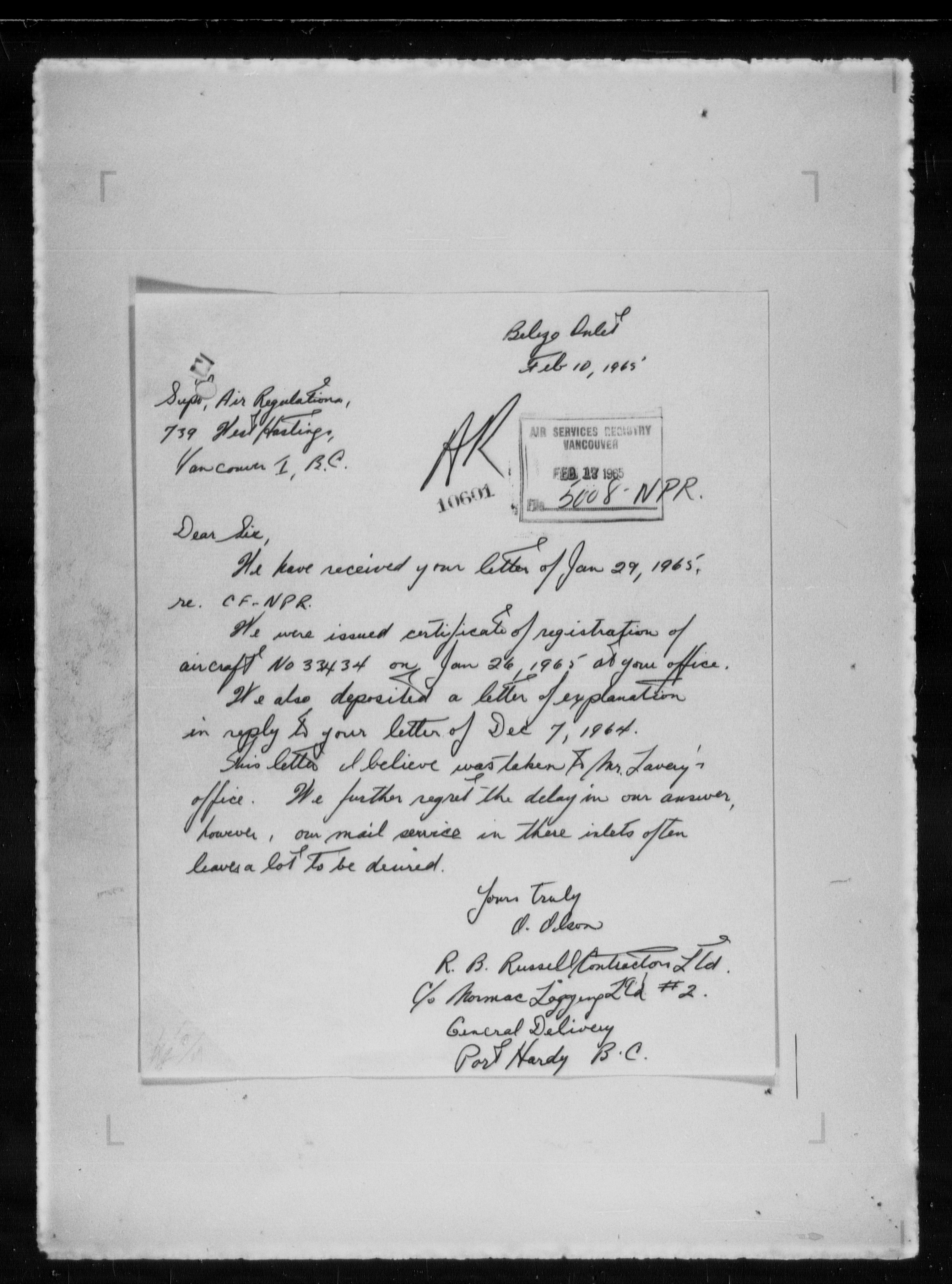 Department of Transport : Civil aircraft registration, inspection and operation files, block 5008, 1920-1986 - 7809