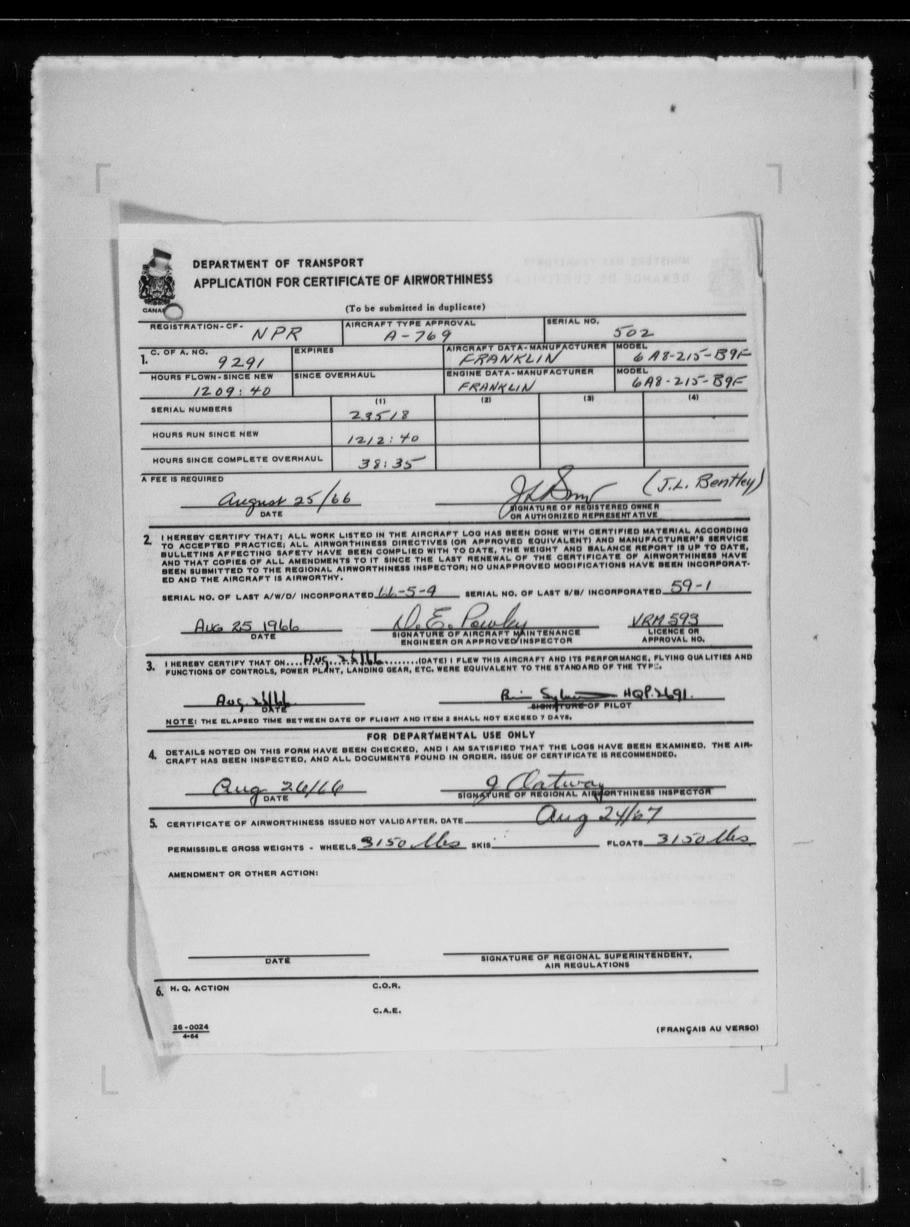 Department of Transport : Civil aircraft registration, inspection and operation files, block 5008, 1920-1986 - 7809