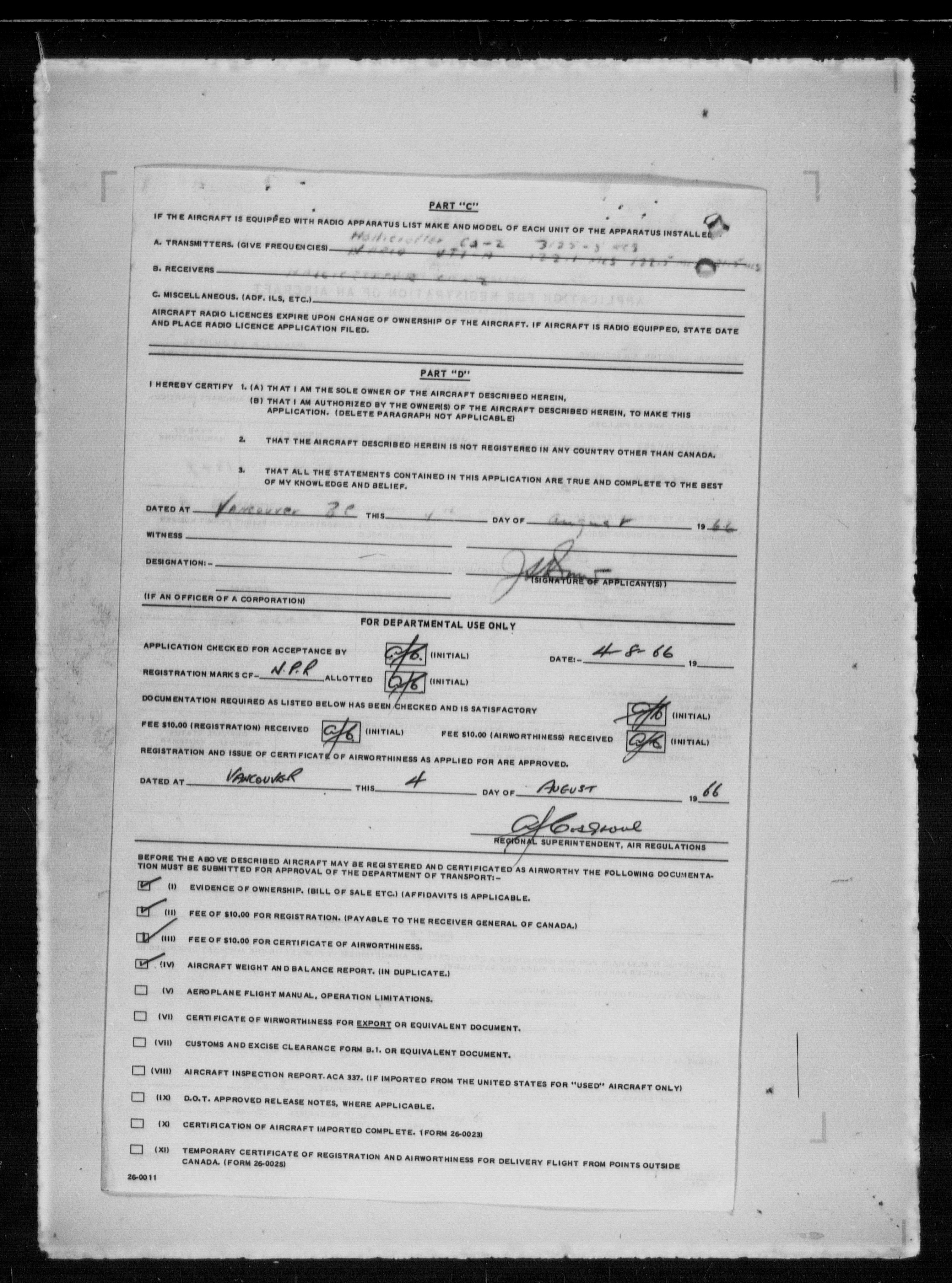 Department of Transport : Civil aircraft registration, inspection and operation files, block 5008, 1920-1986 - 7809