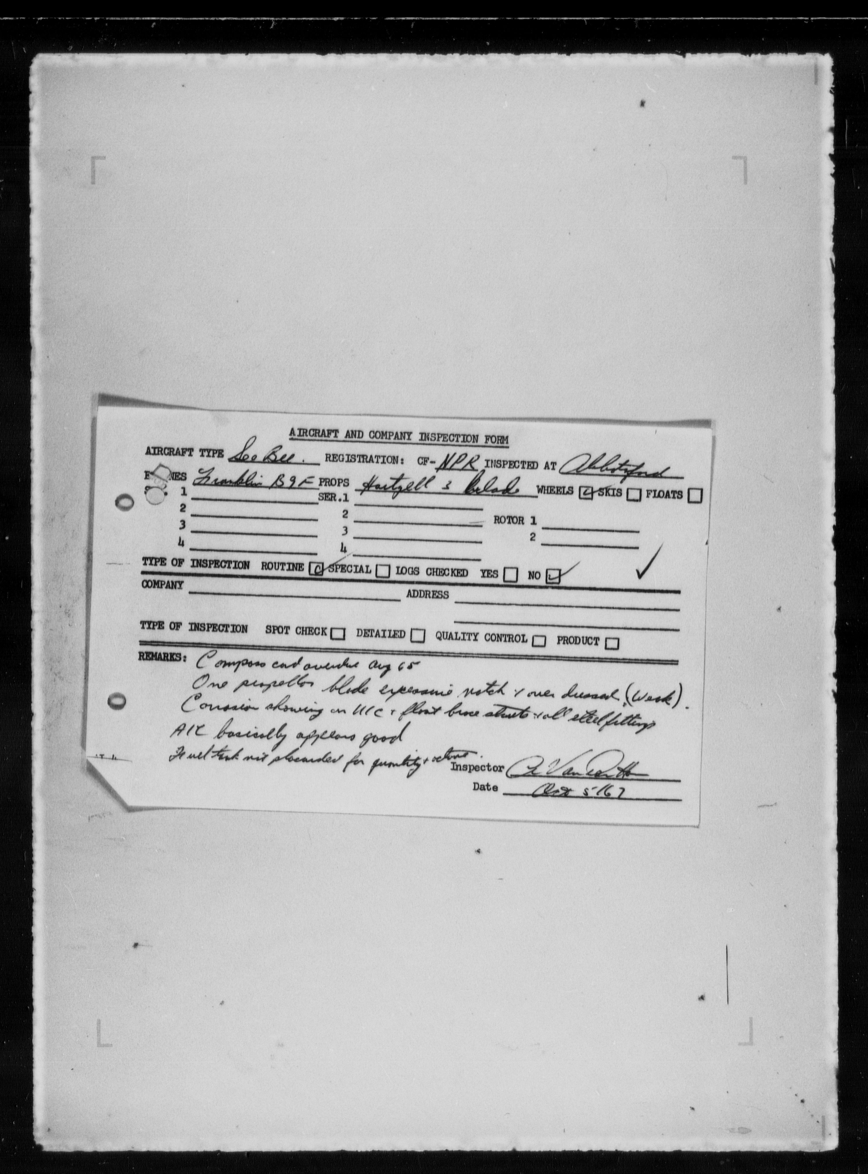 Department of Transport : Civil aircraft registration, inspection and operation files, block 5008, 1920-1986 - 7809