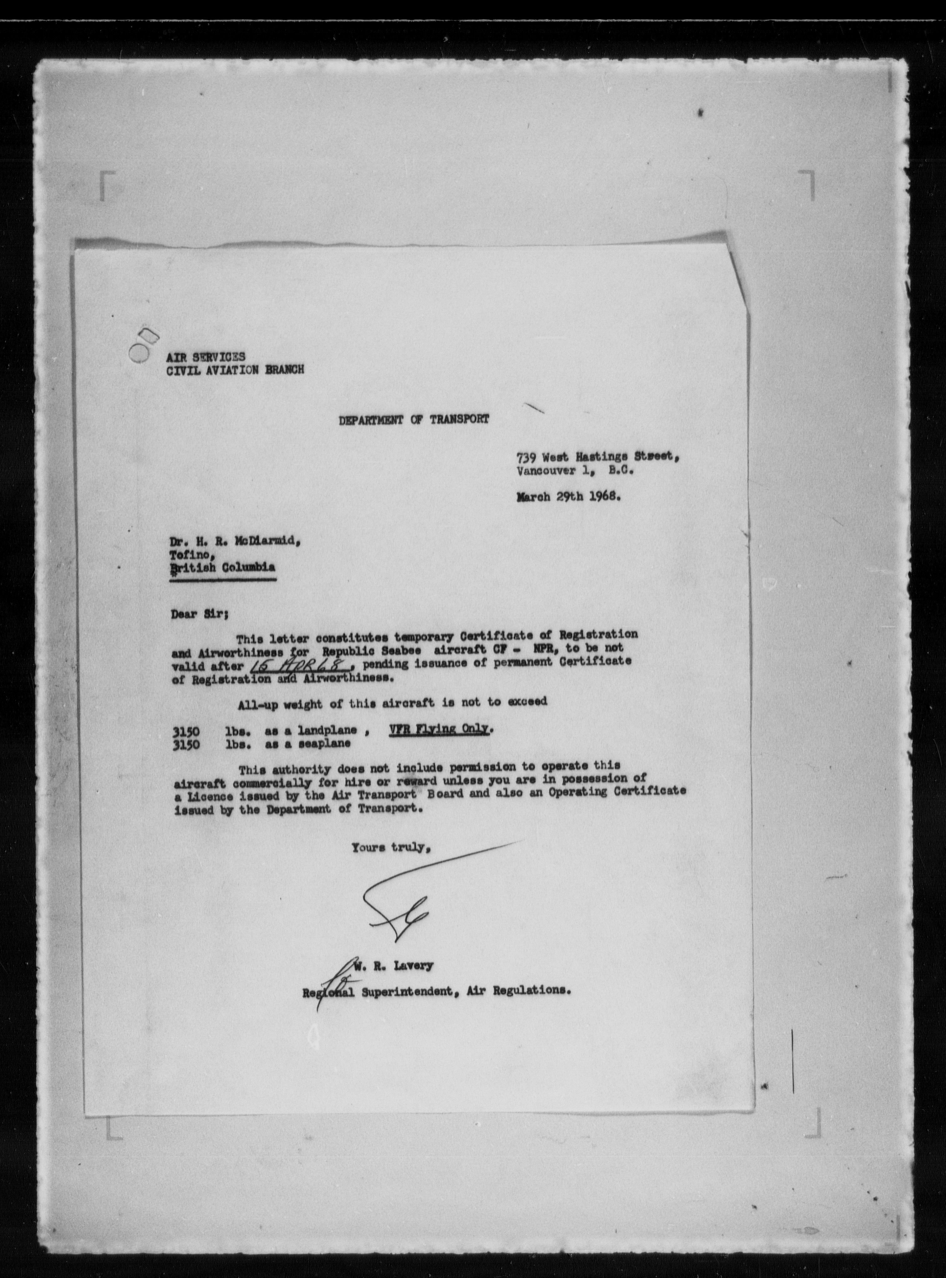 Department of Transport : Civil aircraft registration, inspection and operation files, block 5008, 1920-1986 - 7809