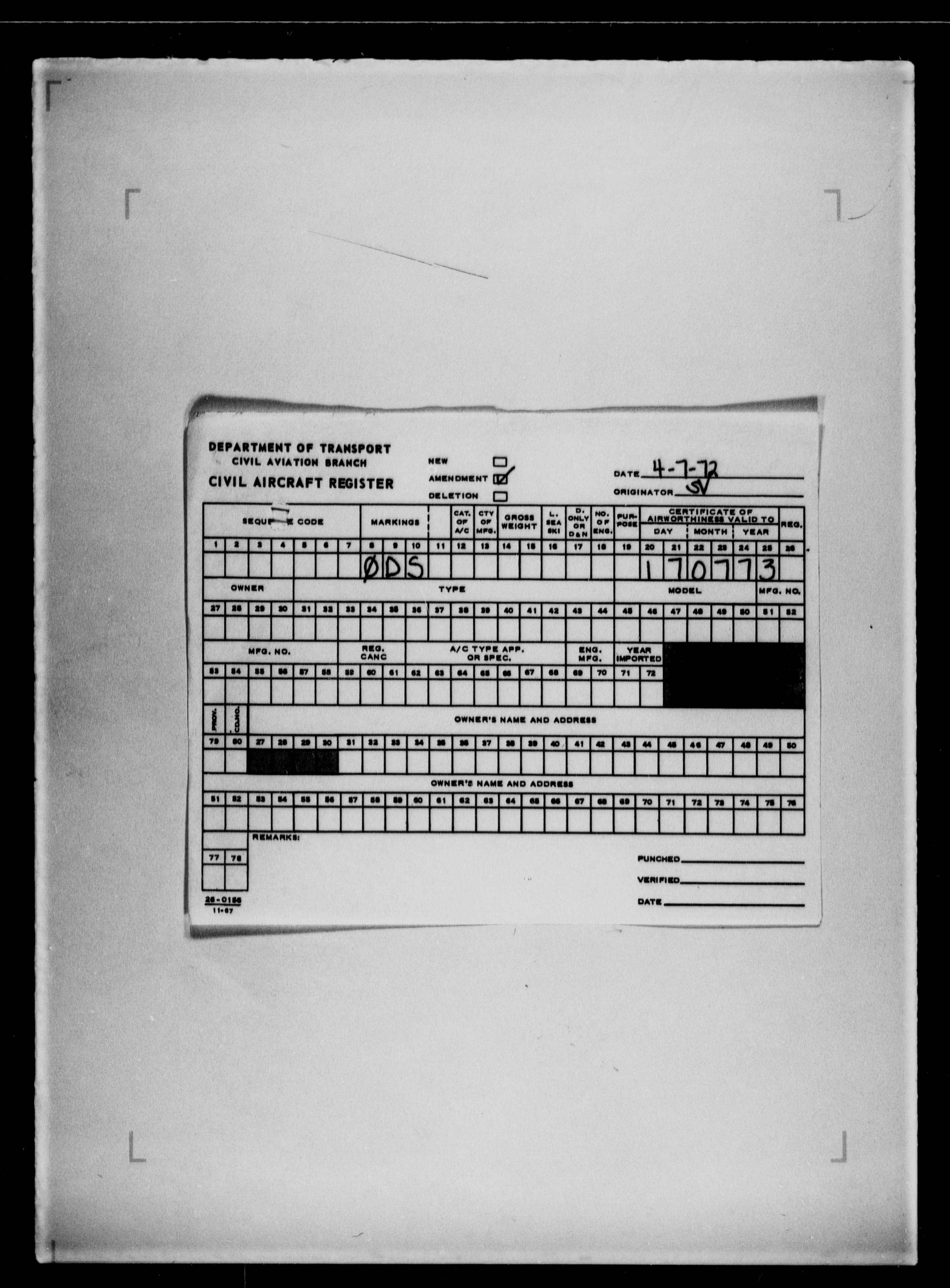 Department of Transport : Civil aircraft registration, inspection and operation files, block 5008, 1920-1986 - 7812