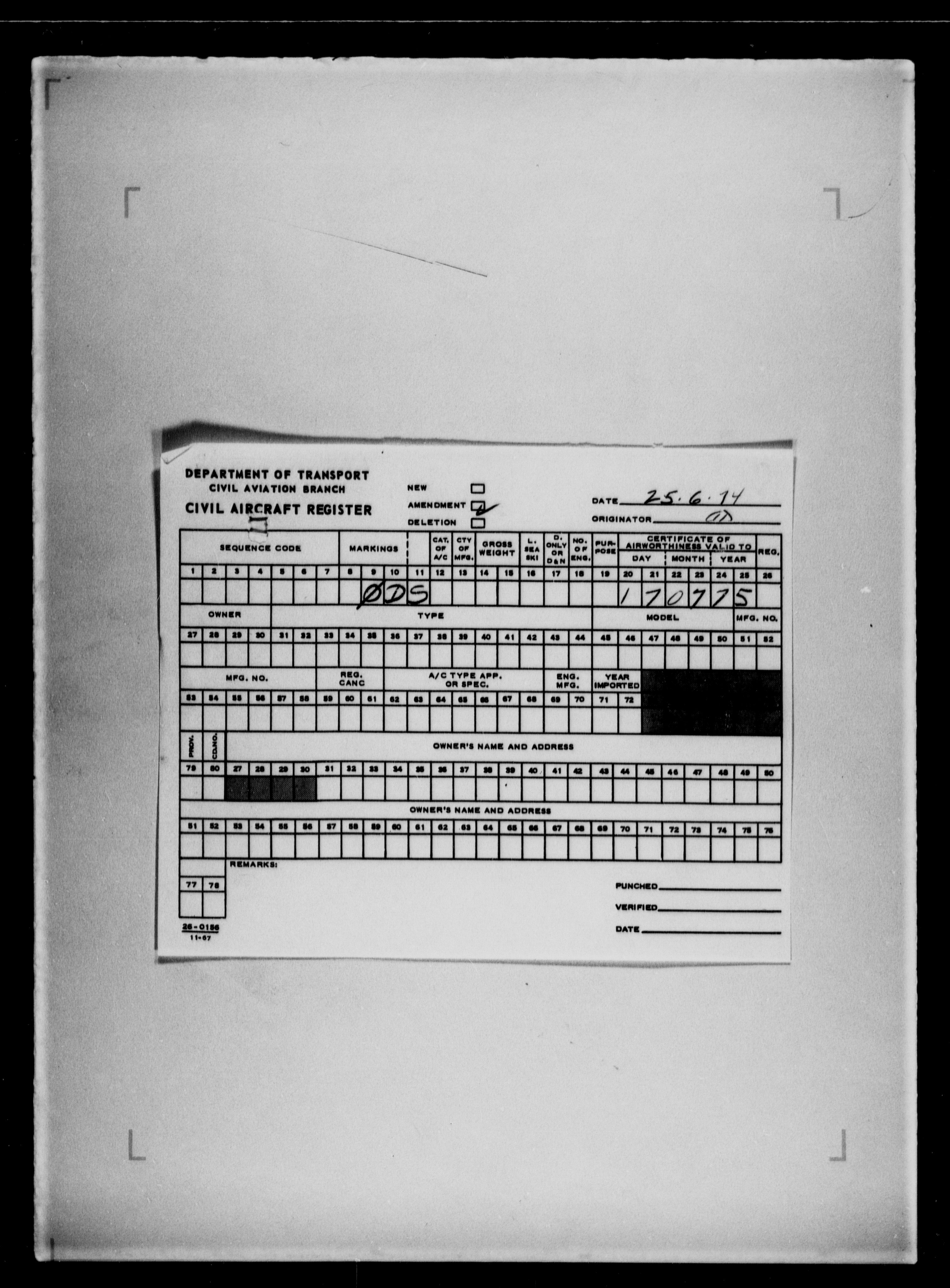 Department of Transport : Civil aircraft registration, inspection and operation files, block 5008, 1920-1986 - 7812