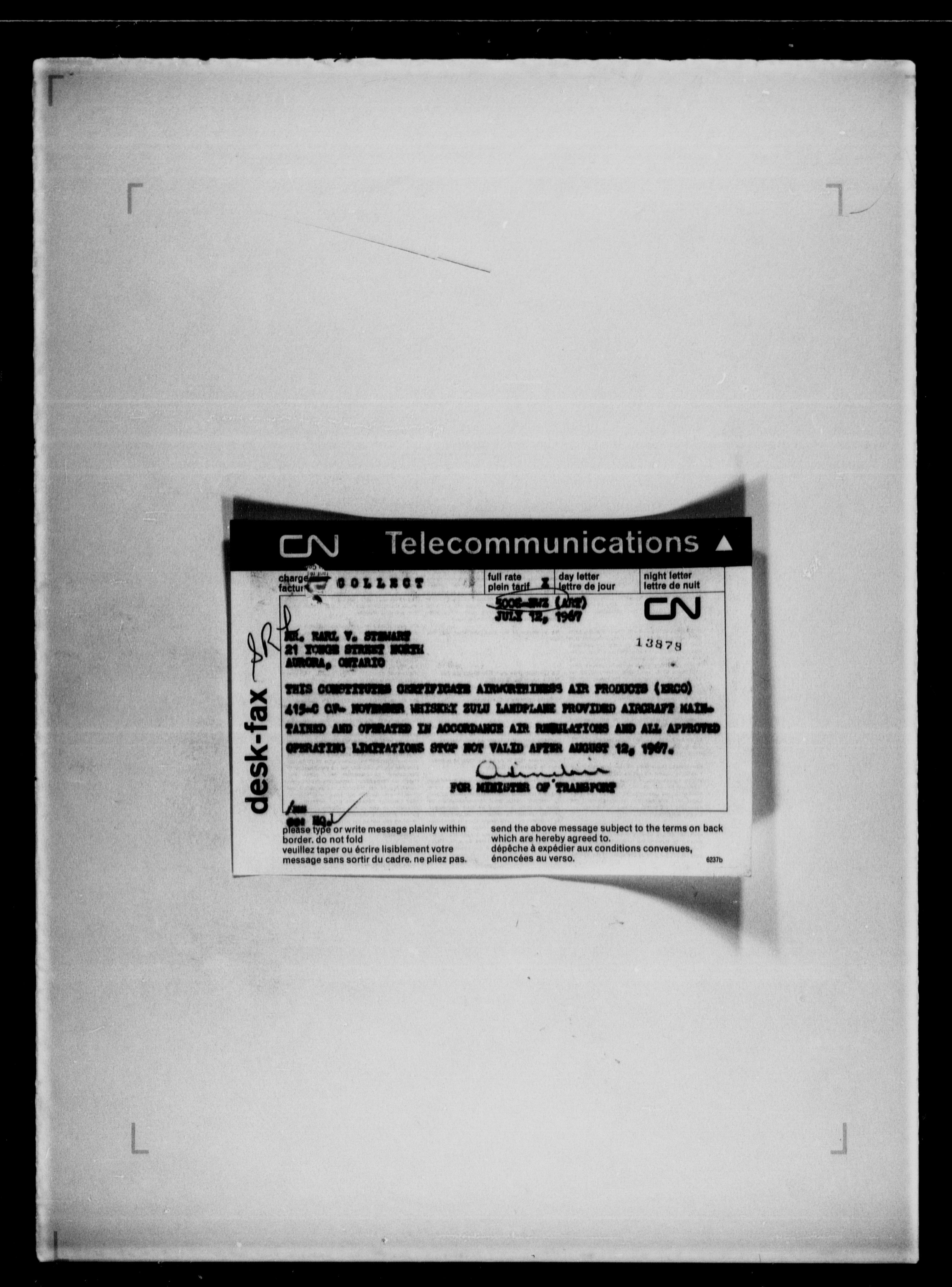 Department of Transport : Civil aircraft registration, inspection and operation files, block 5008, 1920-1986 - 7812