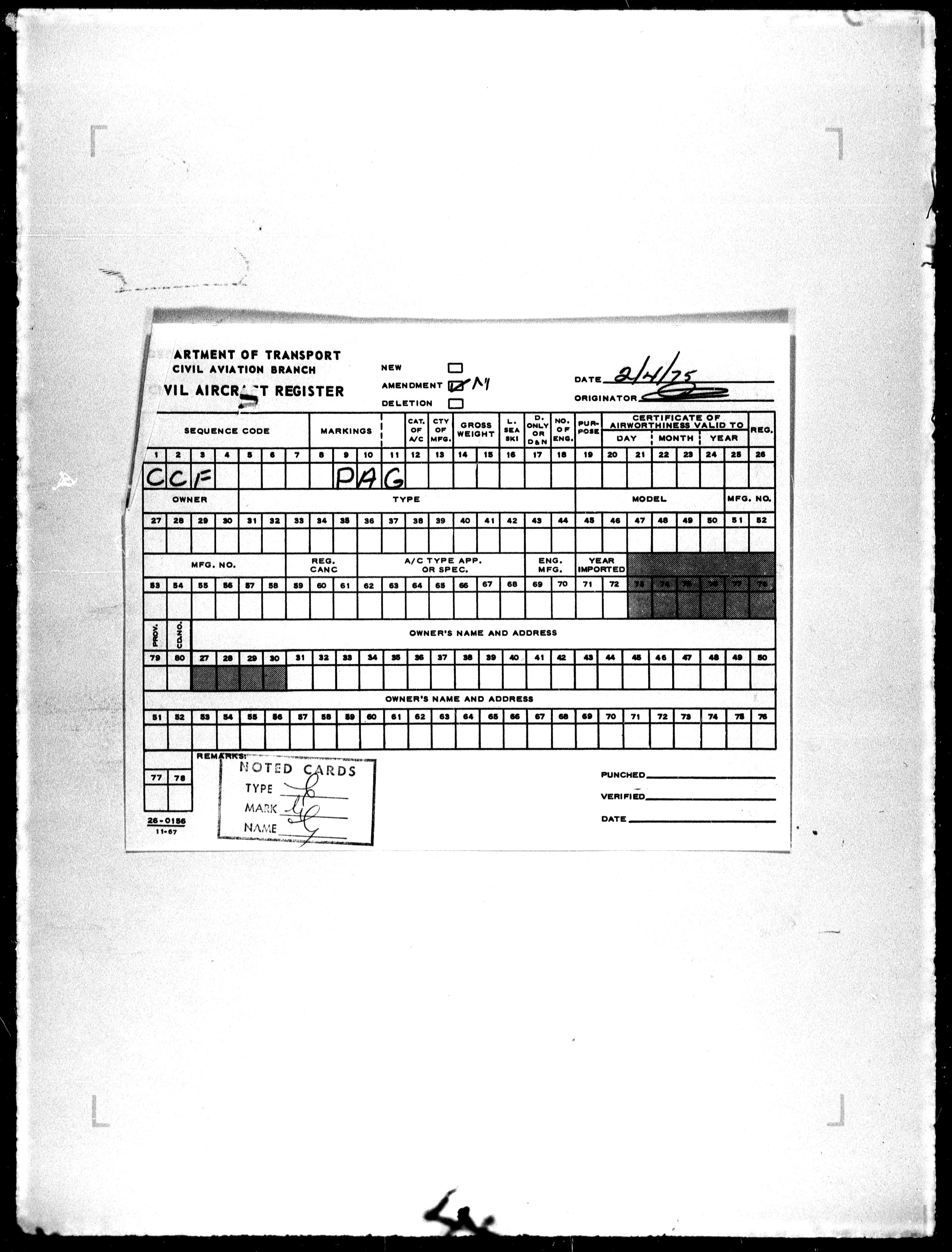 Department of Transport : Civil aircraft registration, inspection and operation files, 1920-1986 : T-7817