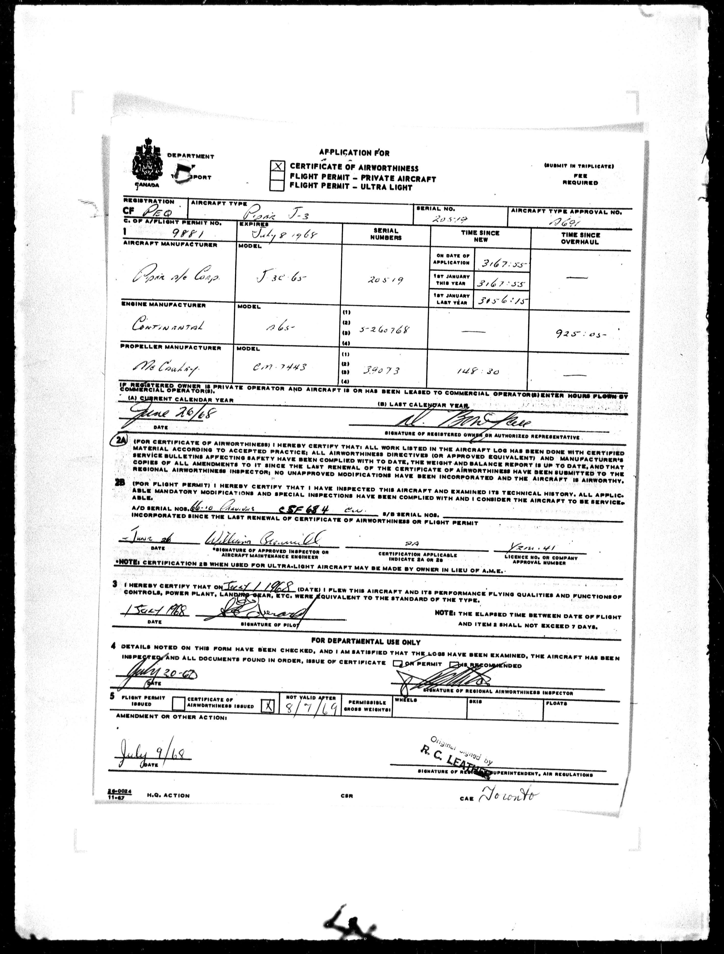 Department of Transport : Civil aircraft registration, inspection and operation files, block 5008, 1920-1986 - 7818