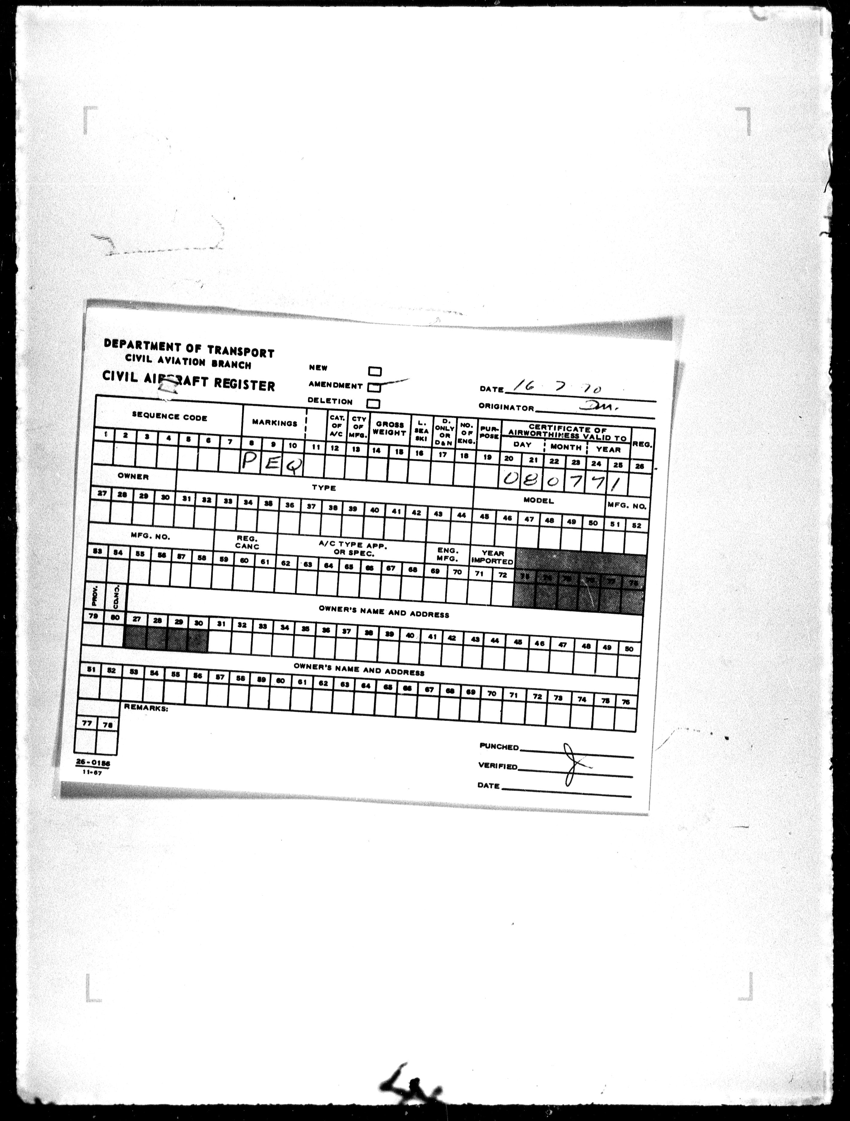 Department of Transport : Civil aircraft registration, inspection and operation files, block 5008, 1920-1986 - 7818