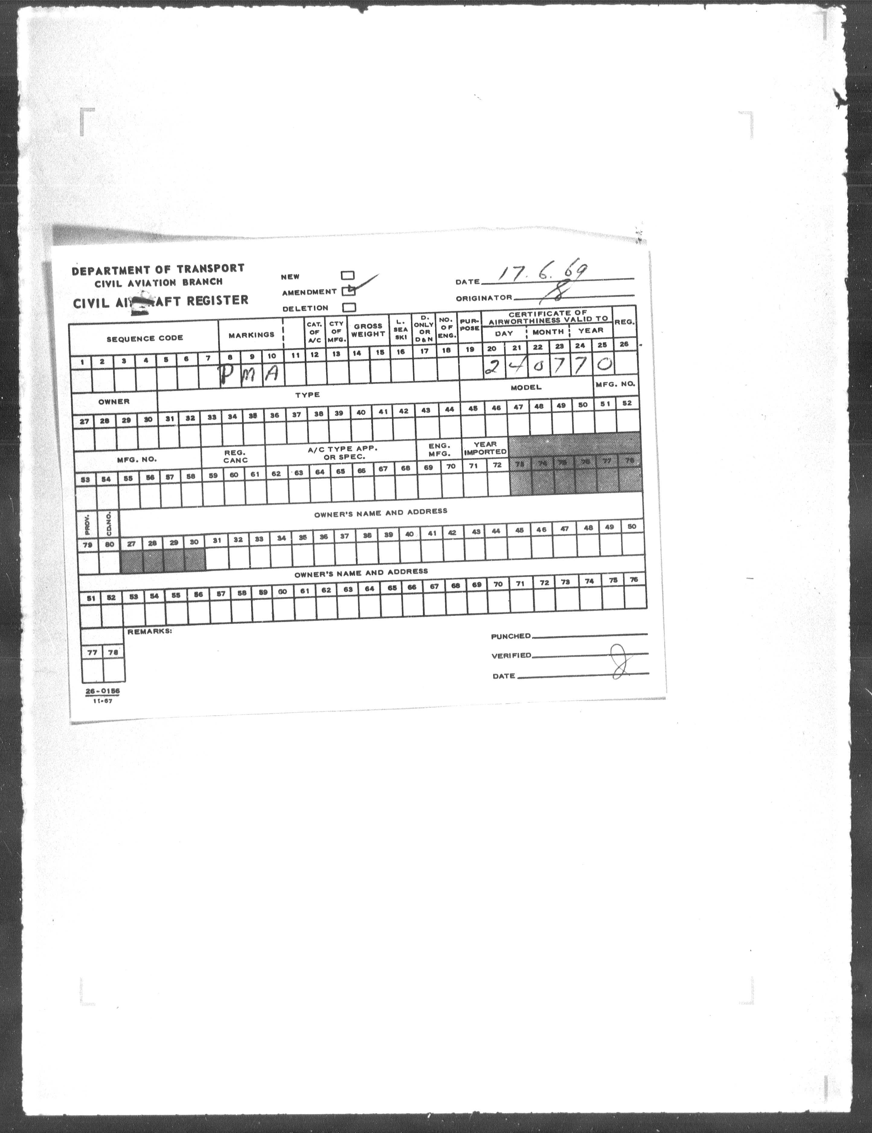 Department of Transport : Civil aircraft registration, inspection and operation files, block 5008, 1920-1986 - 7819