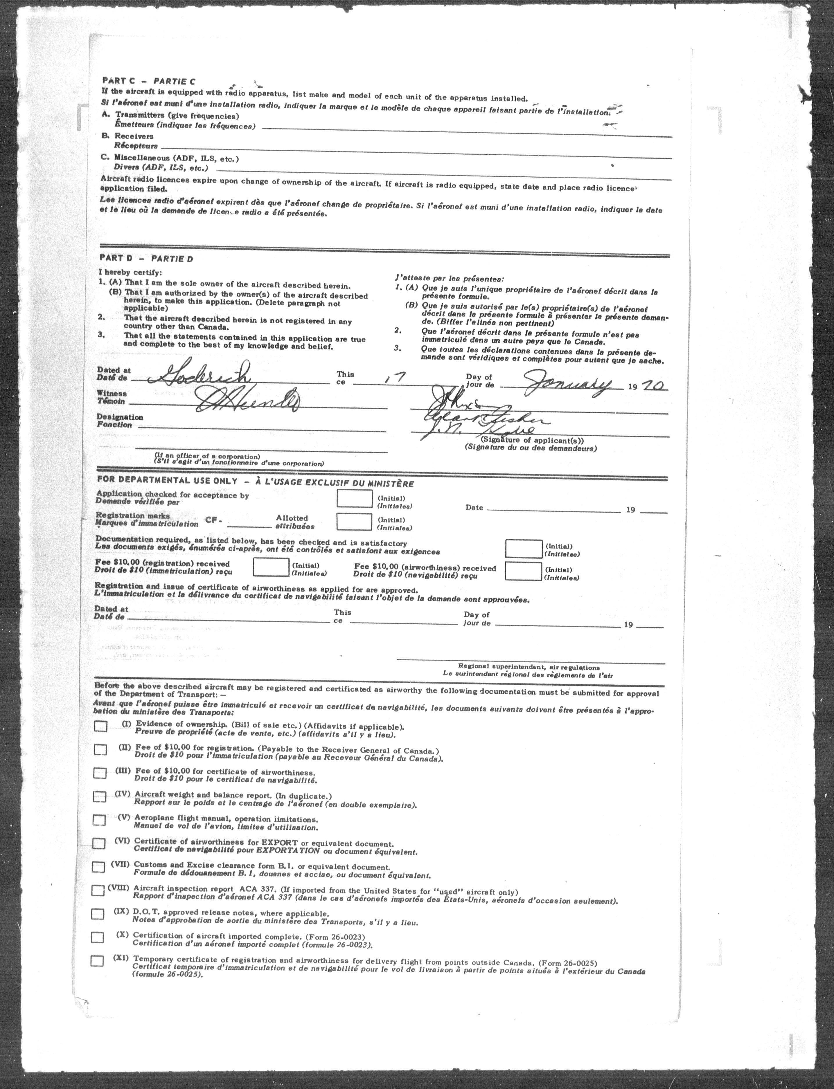 Department of Transport : Civil aircraft registration, inspection and operation files, block 5008, 1920-1986 - 7819