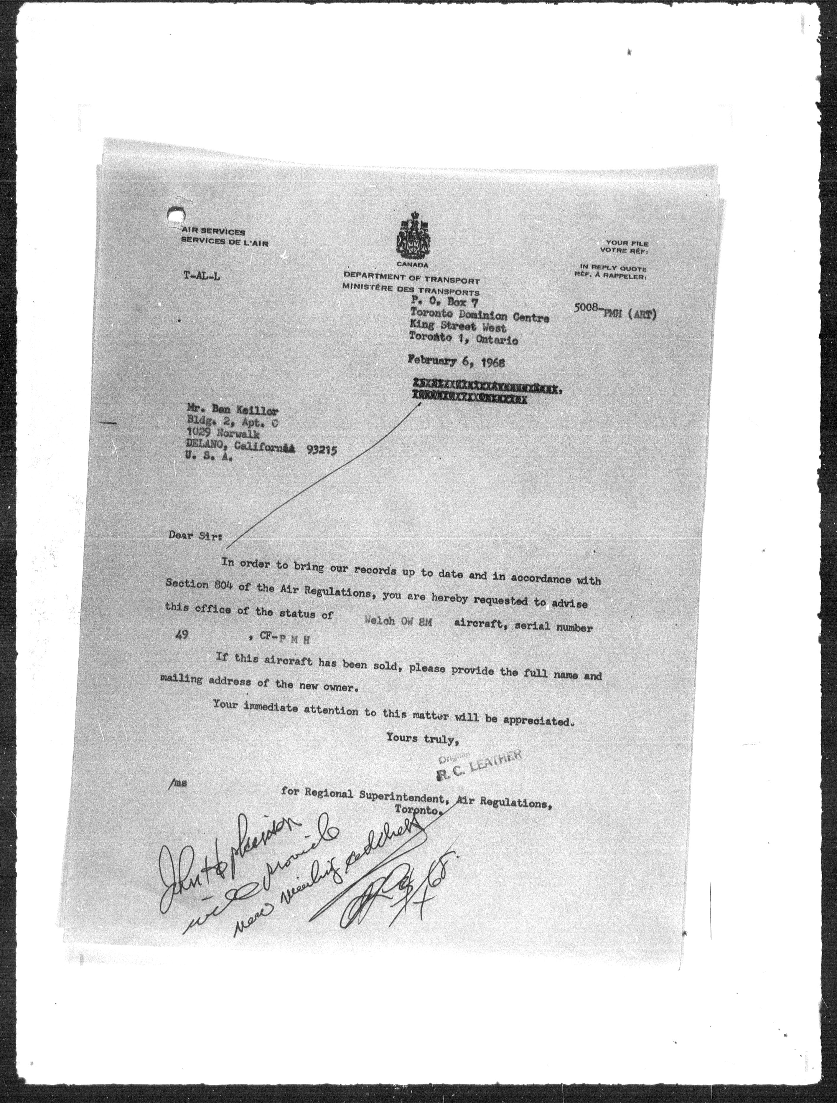 Department of Transport : Civil aircraft registration, inspection and operation files, block 5008, 1920-1986 - 7820