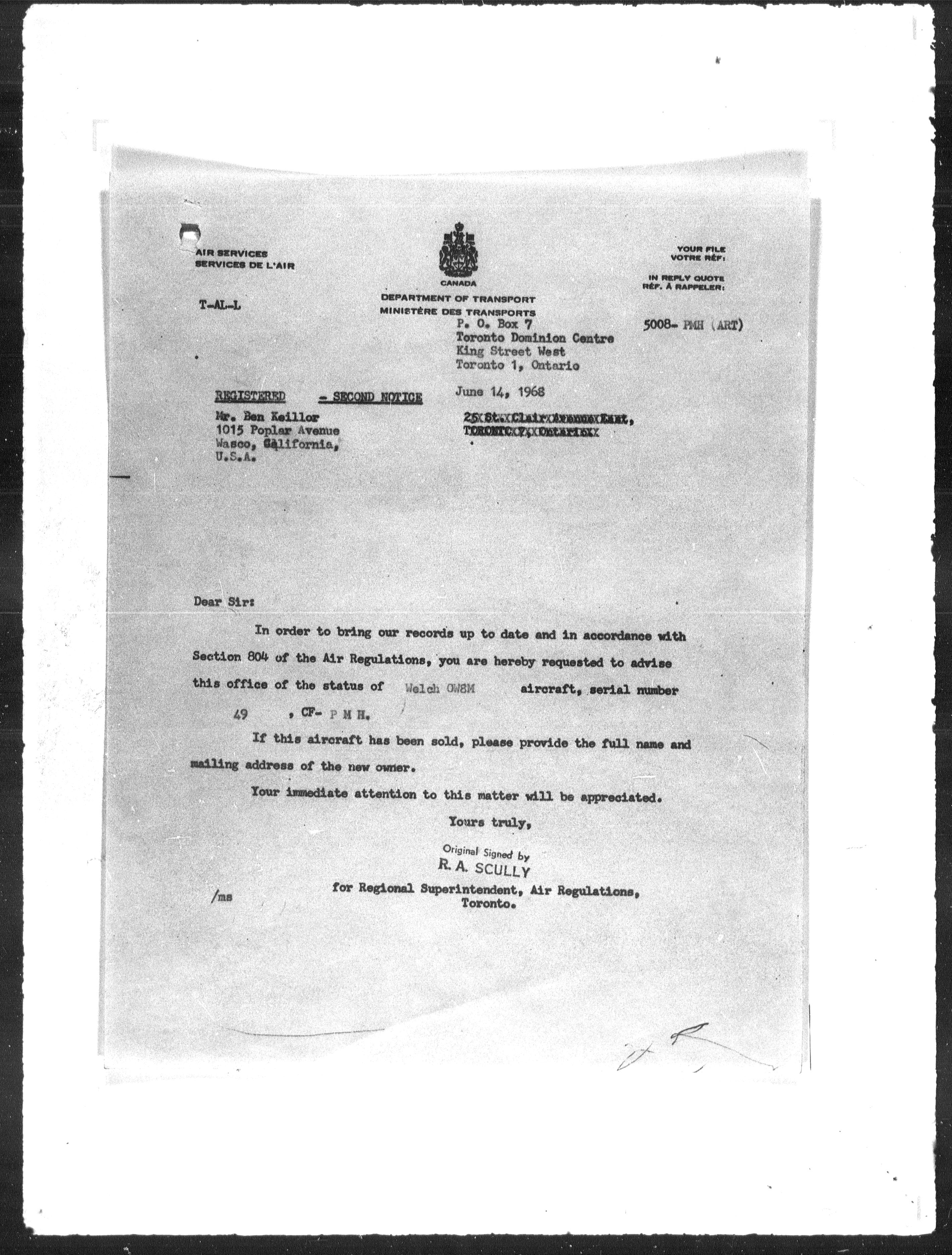 Department of Transport : Civil aircraft registration, inspection and operation files, block 5008, 1920-1986 - 7820