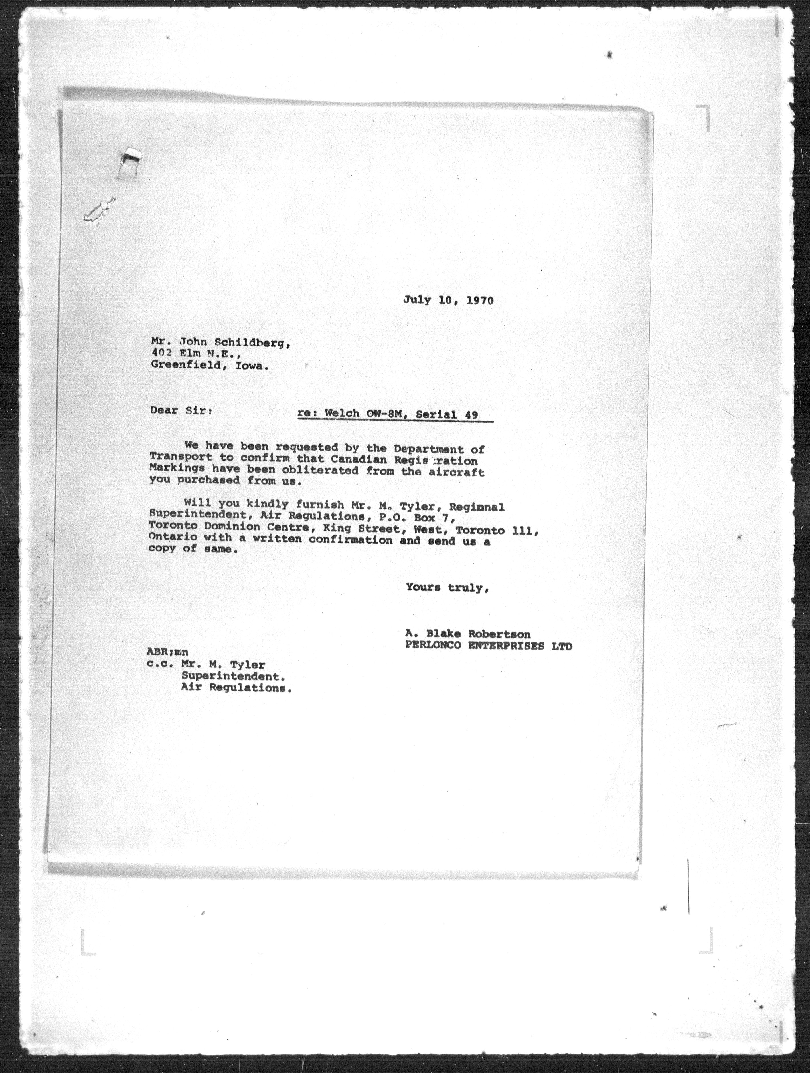 Department of Transport : Civil aircraft registration, inspection and operation files, 1920-1986 : T-7820