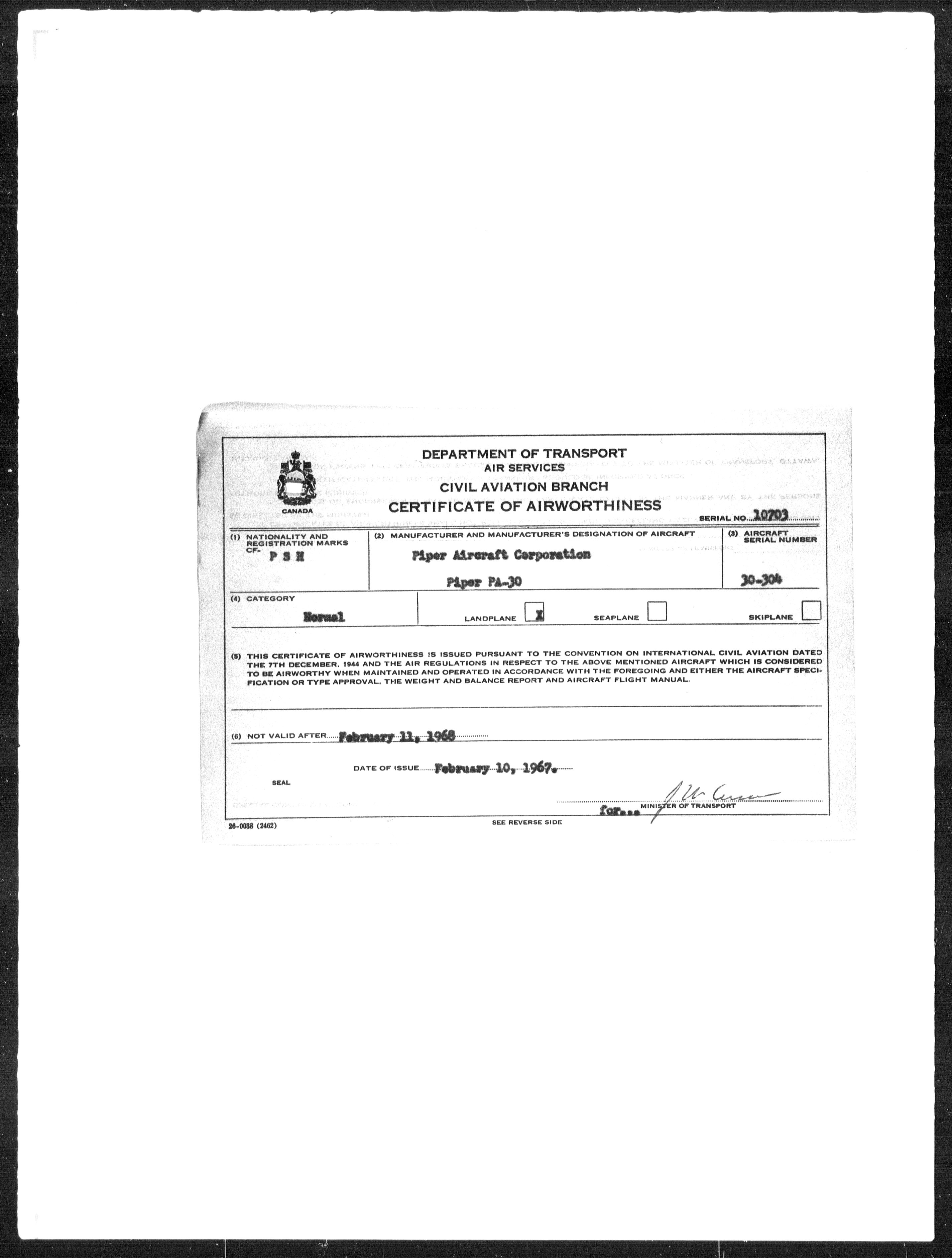 Department of Transport : Civil aircraft registration, inspection and operation files, block 5008, 1920-1986 - 7821