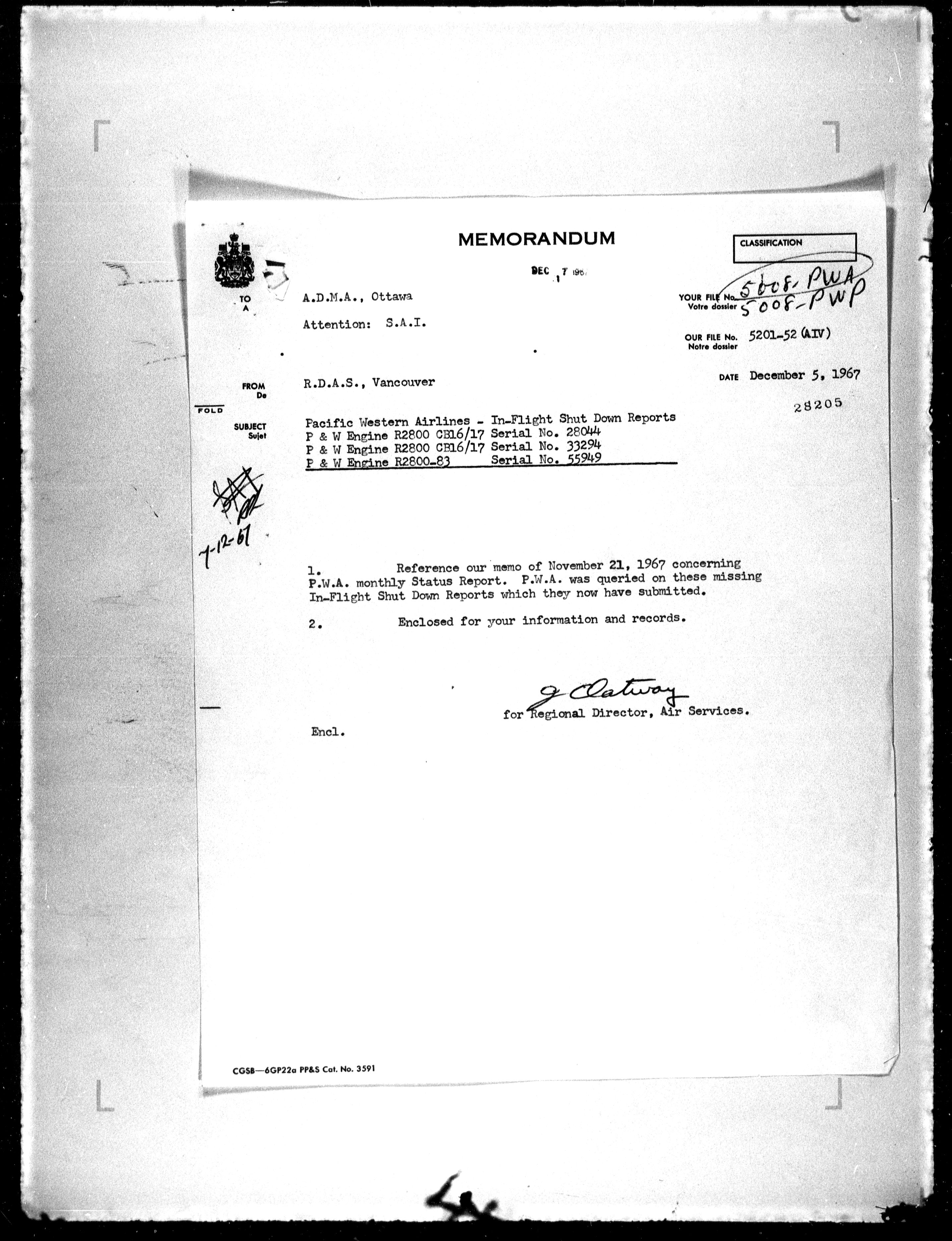 Department of Transport : Civil aircraft registration, inspection and operation files, block 5008, 1920-1986 - 7822