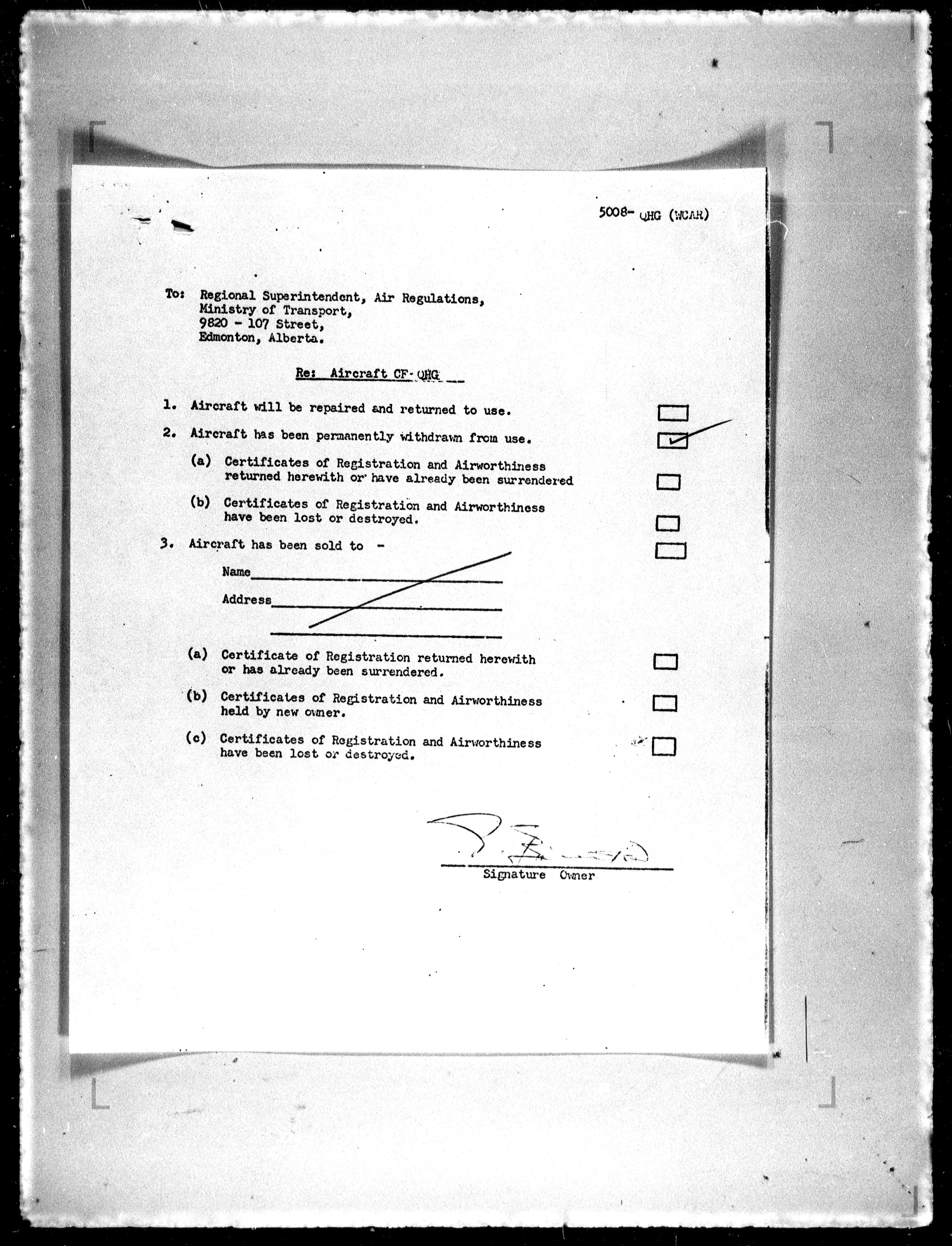 Department of Transport : Civil aircraft registration, inspection and operation files, block 5008, 1920-1986 - 7824